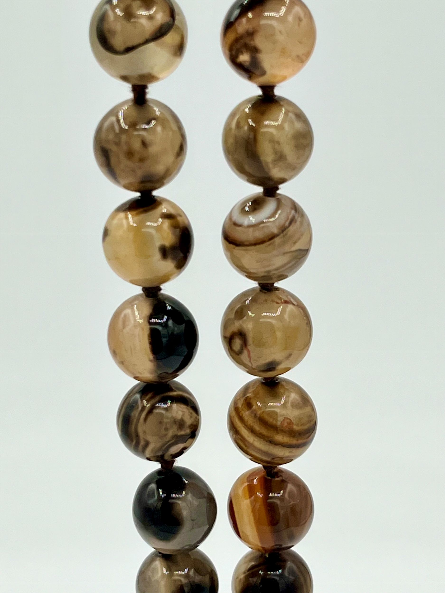 fermezza in oro giallo 18k, ad un filo di sfere di agataDiametro sfere 14.5 - 15 mm. Punzonato 750 - 786 FI. Dimensioni fermezza 40 x 32 mm cm. Lunghezza 70 cm. Peso 184 gr.Stato di conservazione: ***** eccellente.