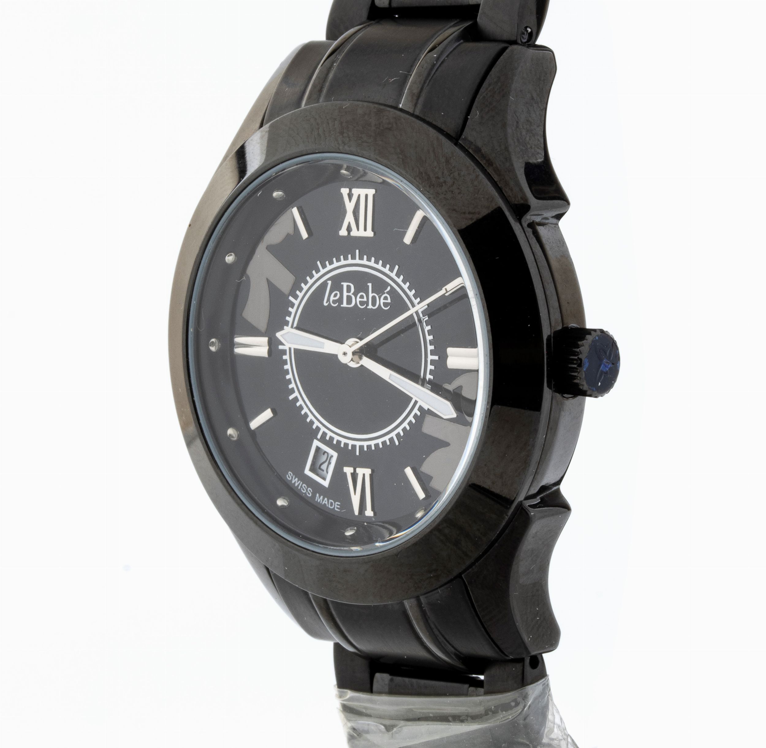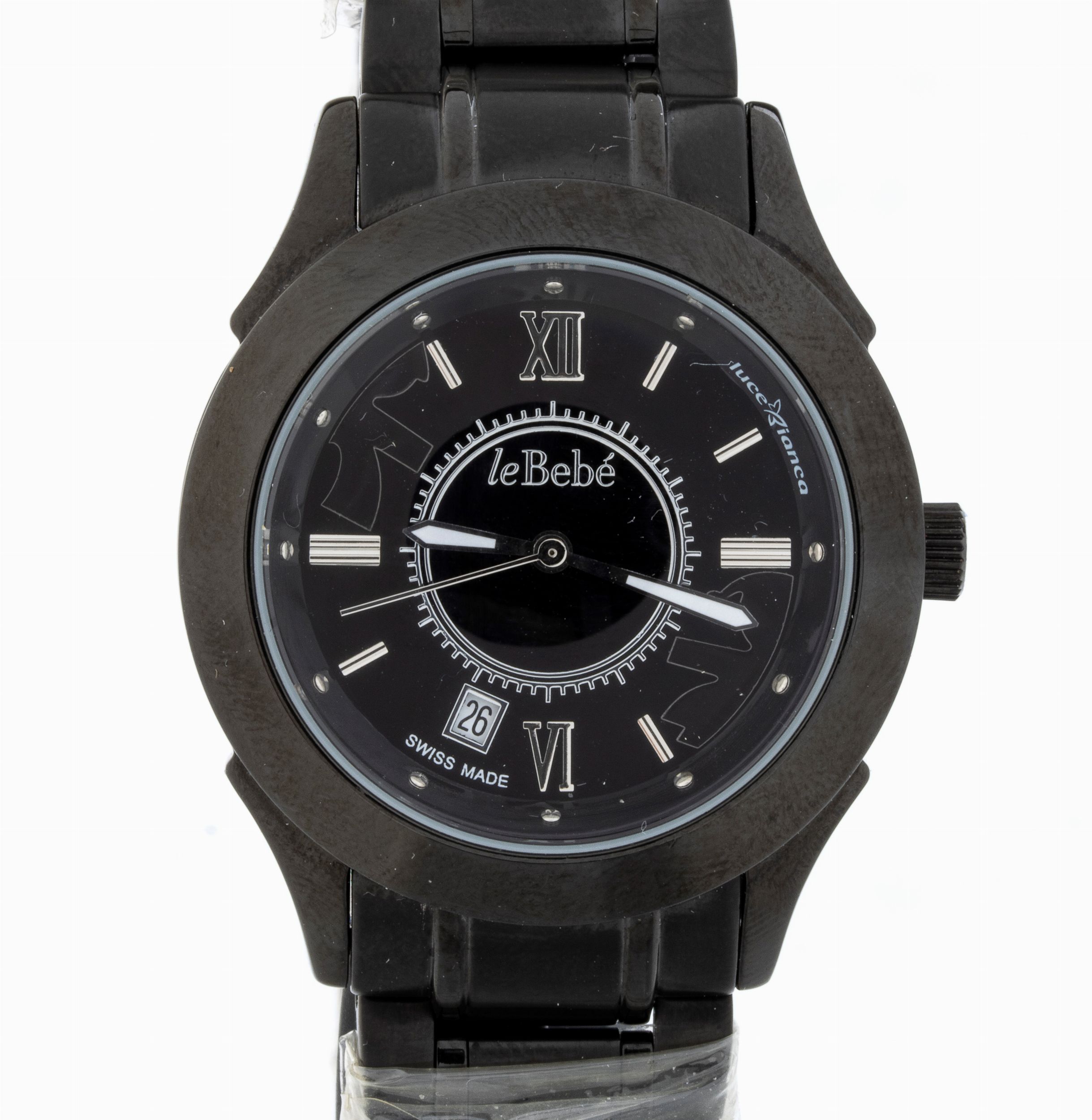 cassa e bracciale in metallo laccato nero.