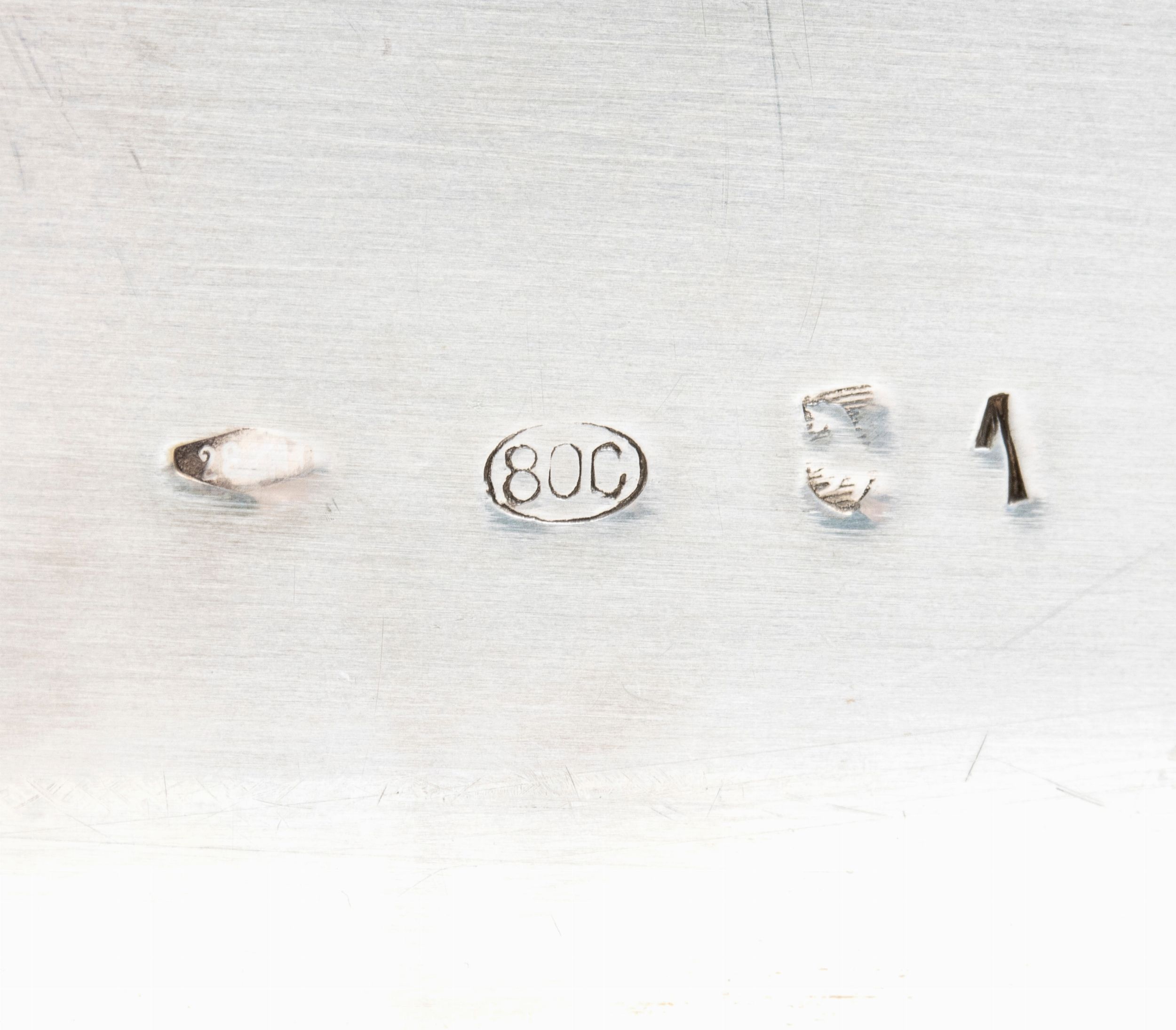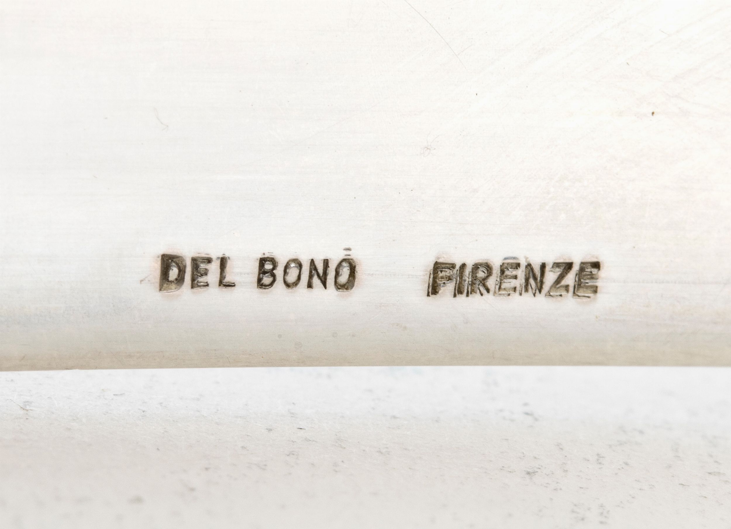 argento 800/1000. Punzonata 800 - 28 MI - Del Bono Firenze, argentiere FABBRICA ITALIANA ARGENTERIE di Alignani Pasquale & Alignani Mariano. Stato di conservazione: **** buono.