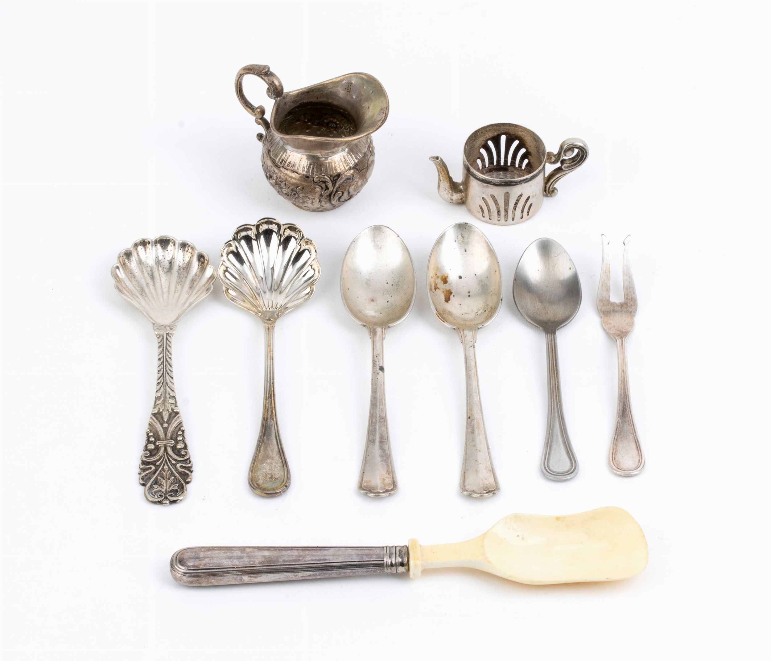 1) due cucchiaini a forma di conchiglia: lunghezza 12,5 cm. Un cucchiaino è punzonato 800 e uno 800 - 280 PD - MM.