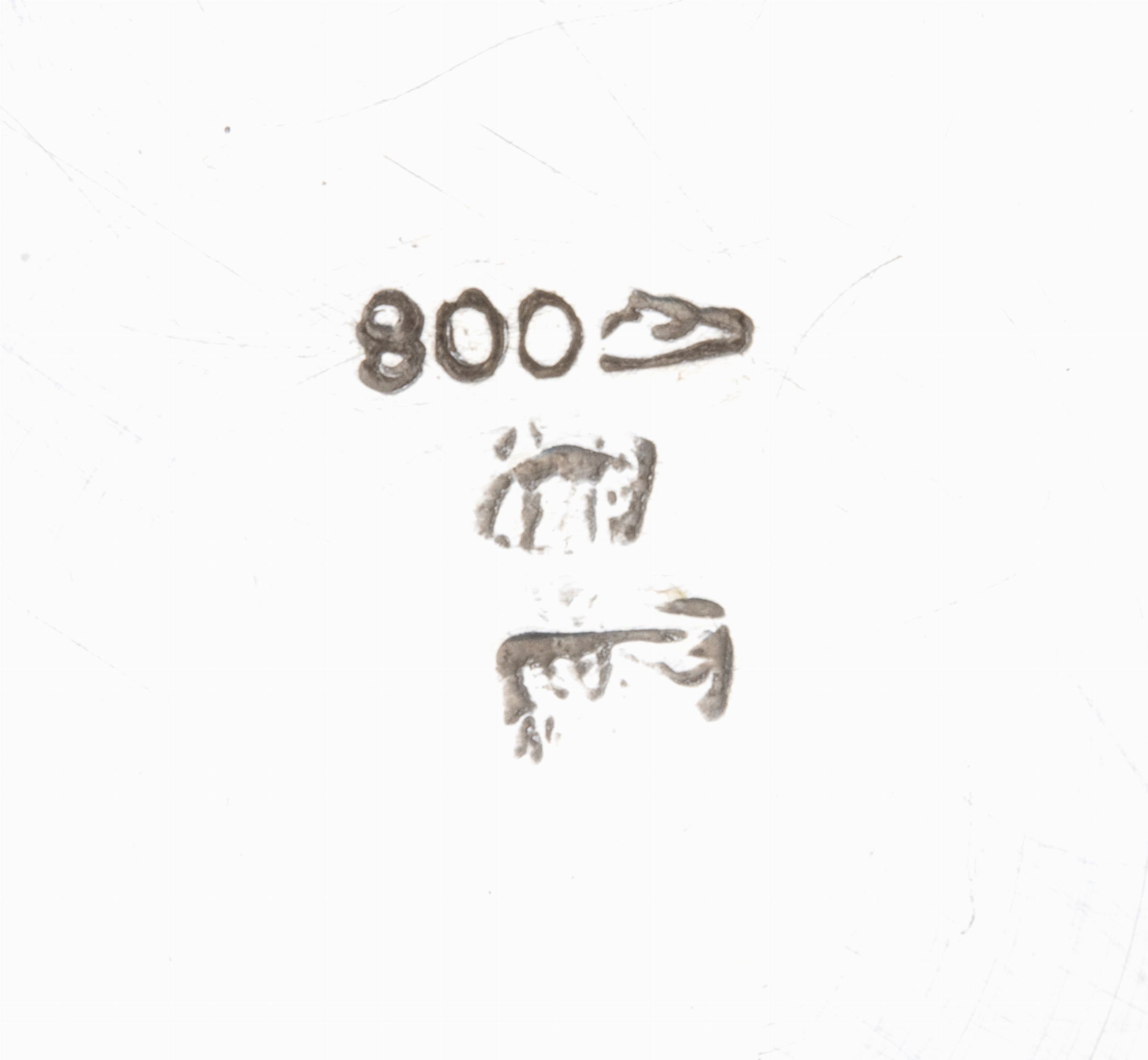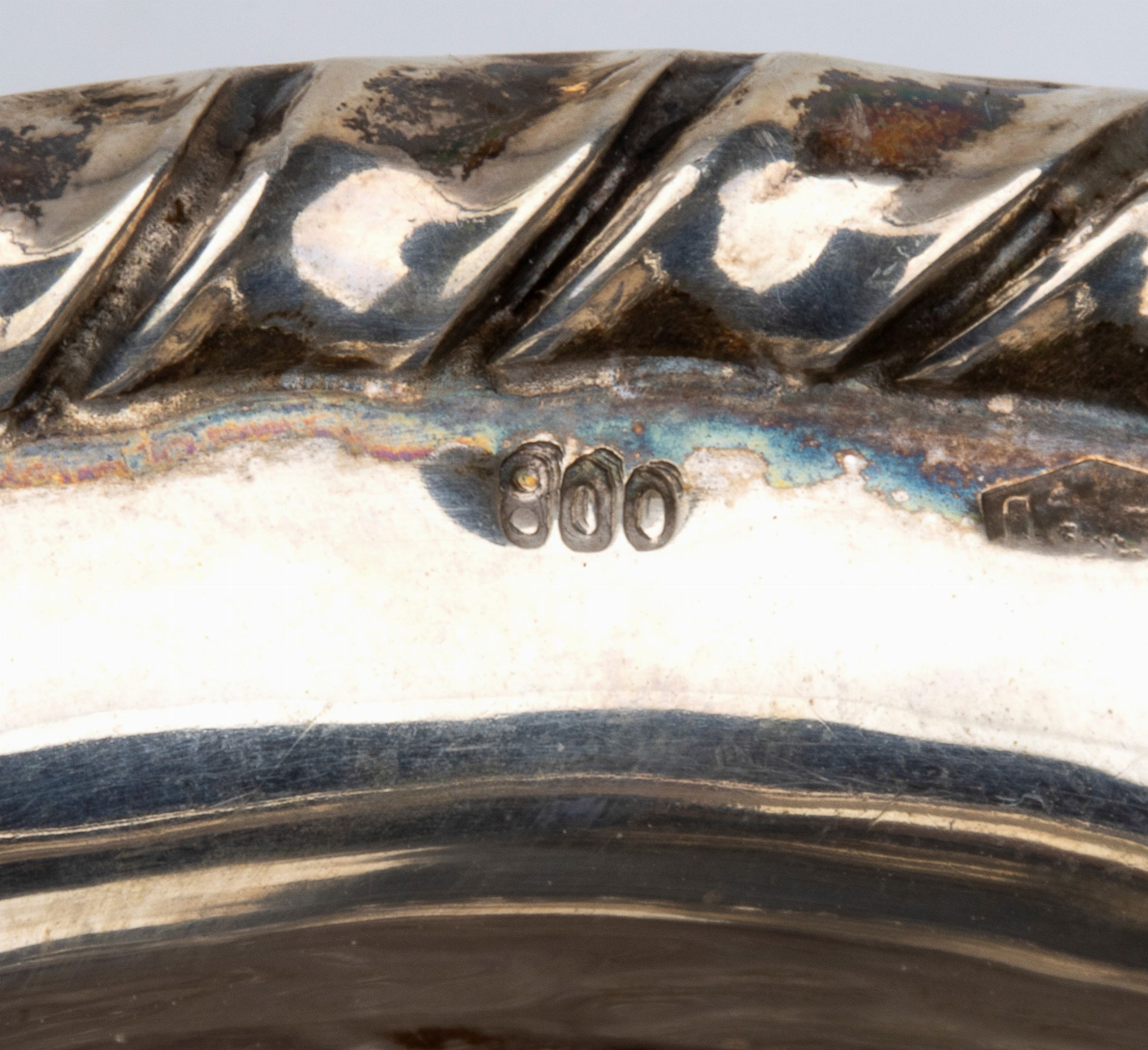 2) Una vasca con bordo San Marco: 8 x 27,5 x 19 cm. Punzonata 800 - 80 FI - Fornari? Roma.