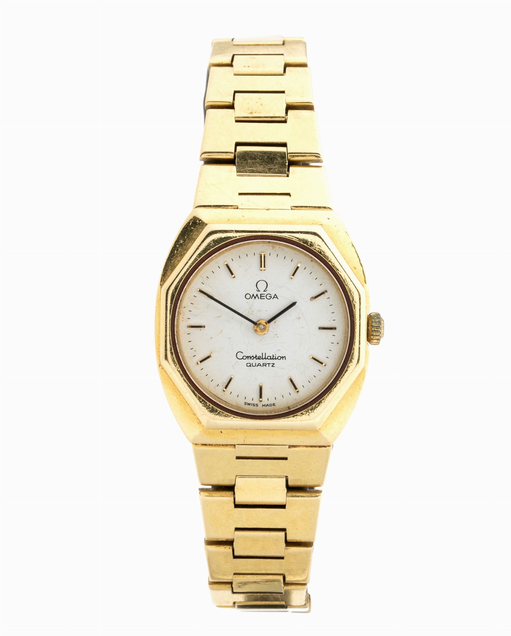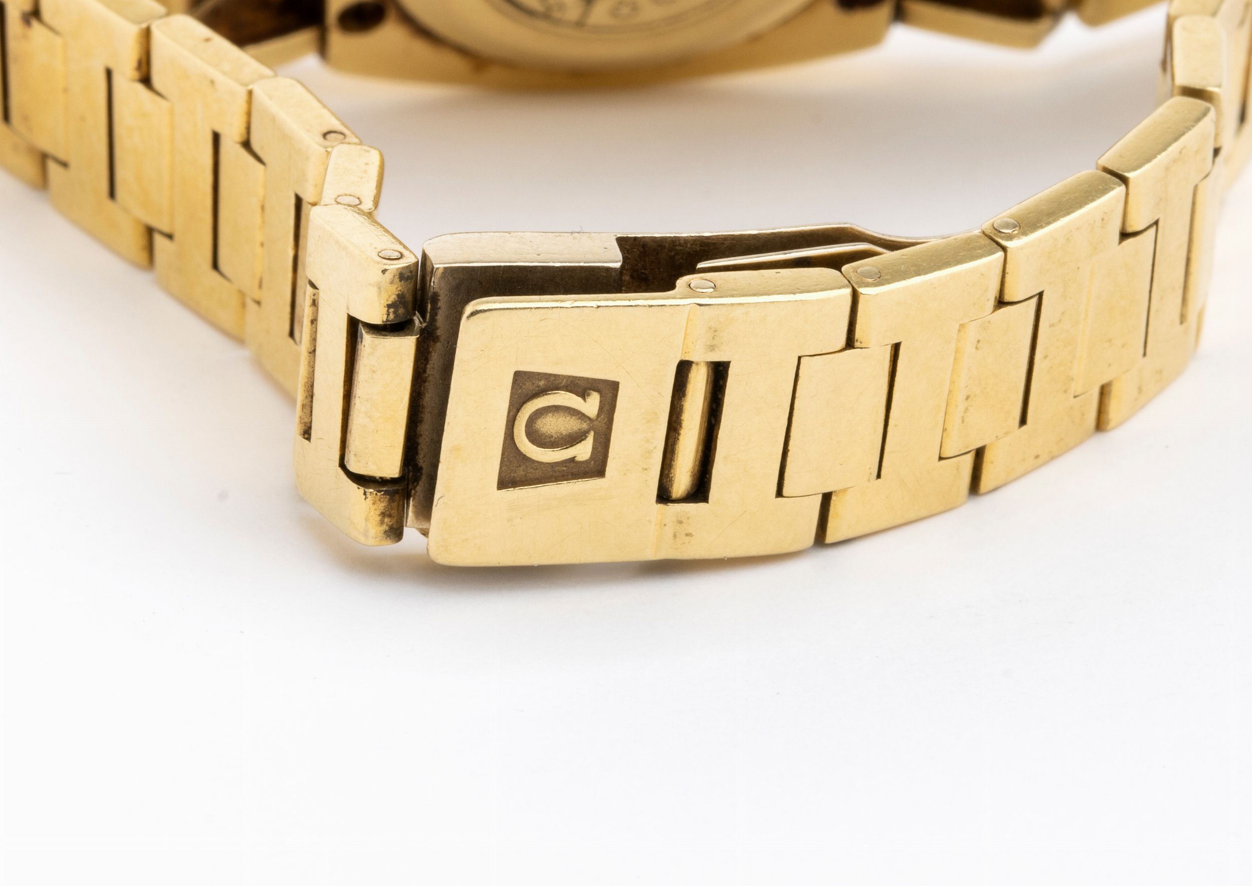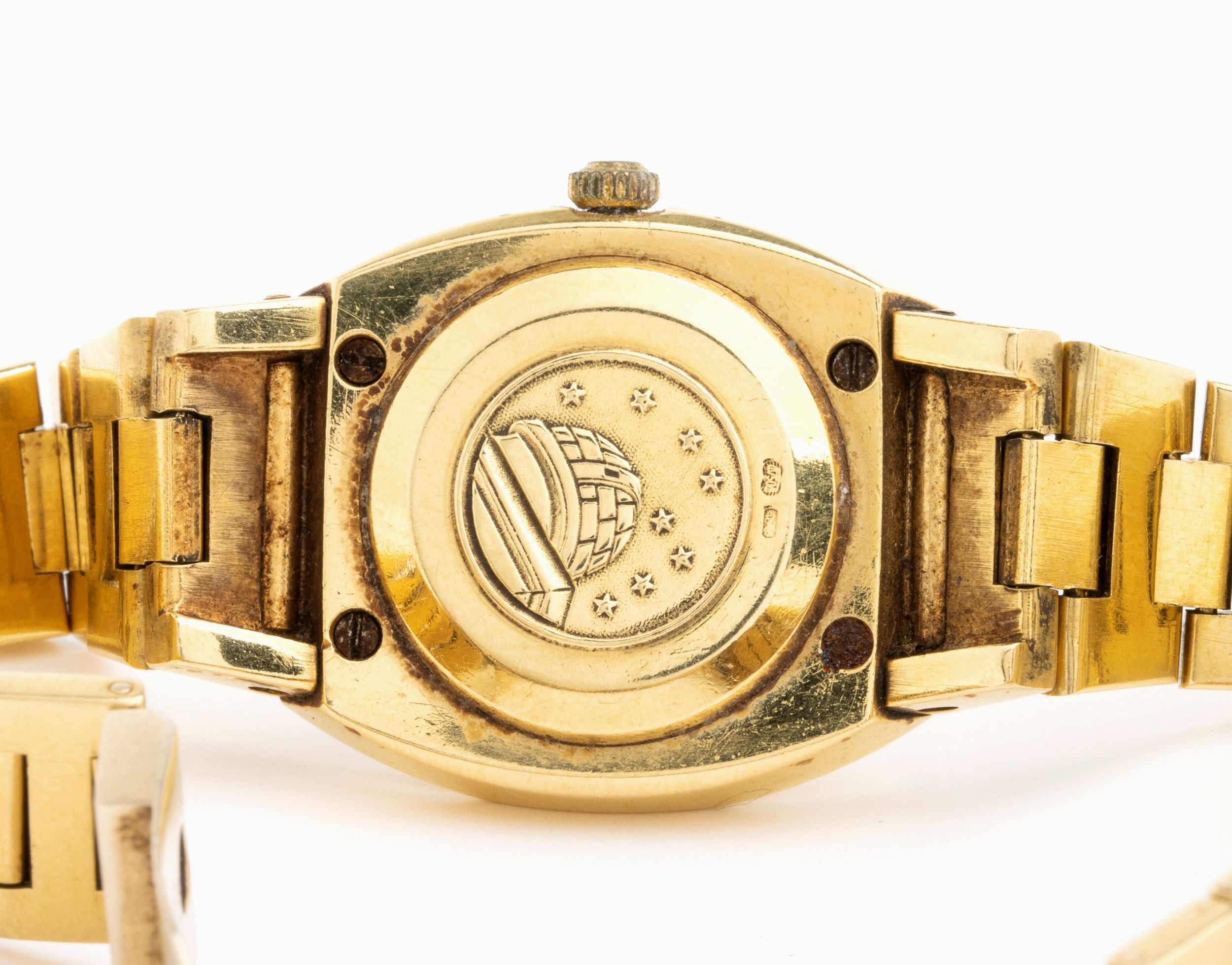 con cassa e bracciale in oro. Movimento al quarzo. Peso lordo 69,7 gr.Stato di conservazione: *** discreto, attualmente non marciante