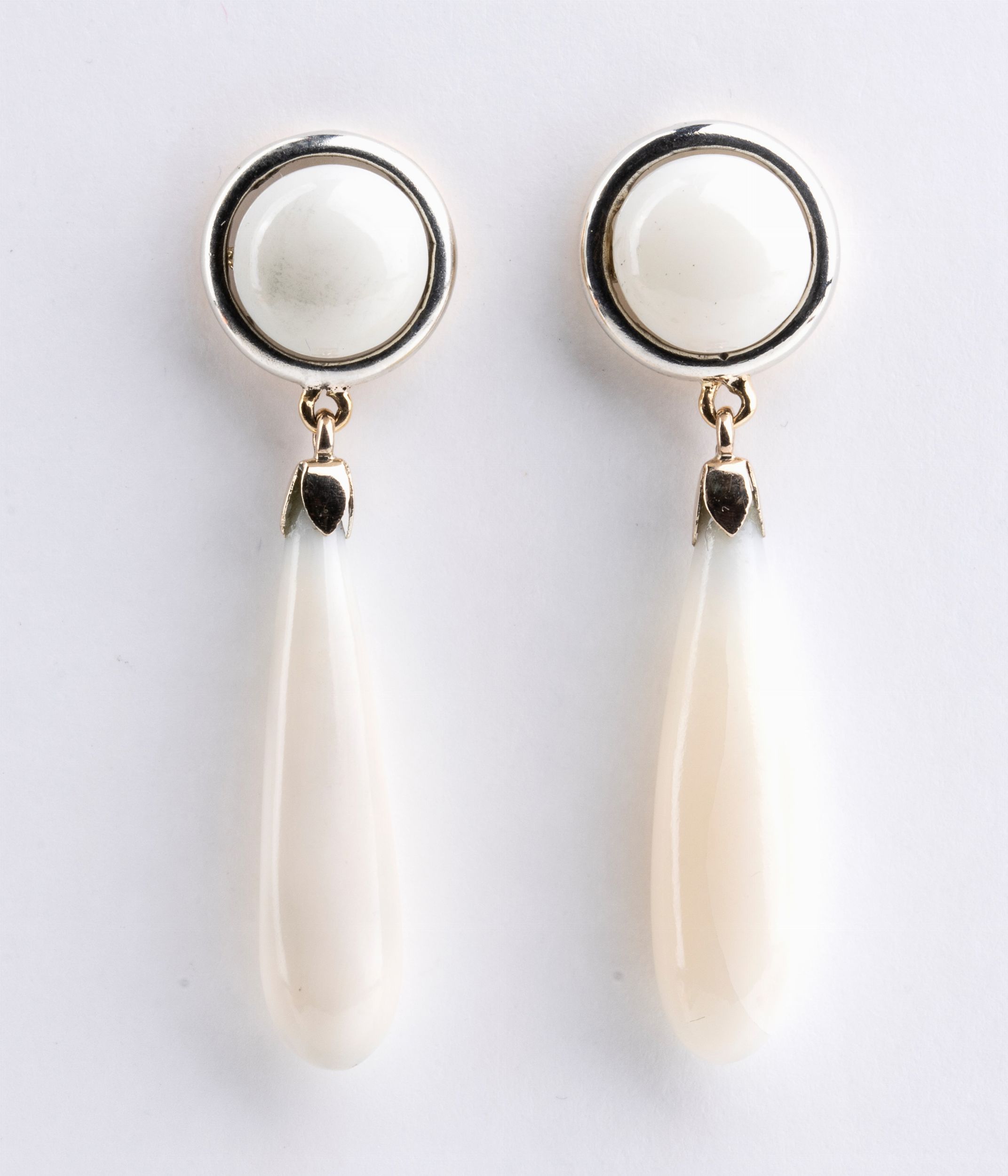 in oro giallo e bianco 18k con pendente in corallo bianco (corallium Konjoy).
