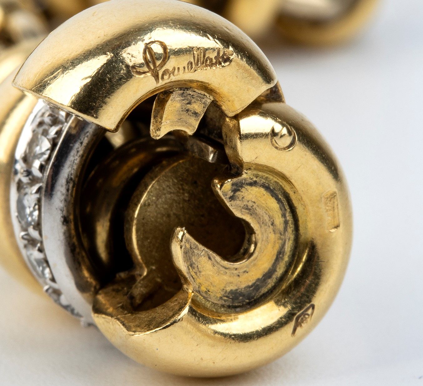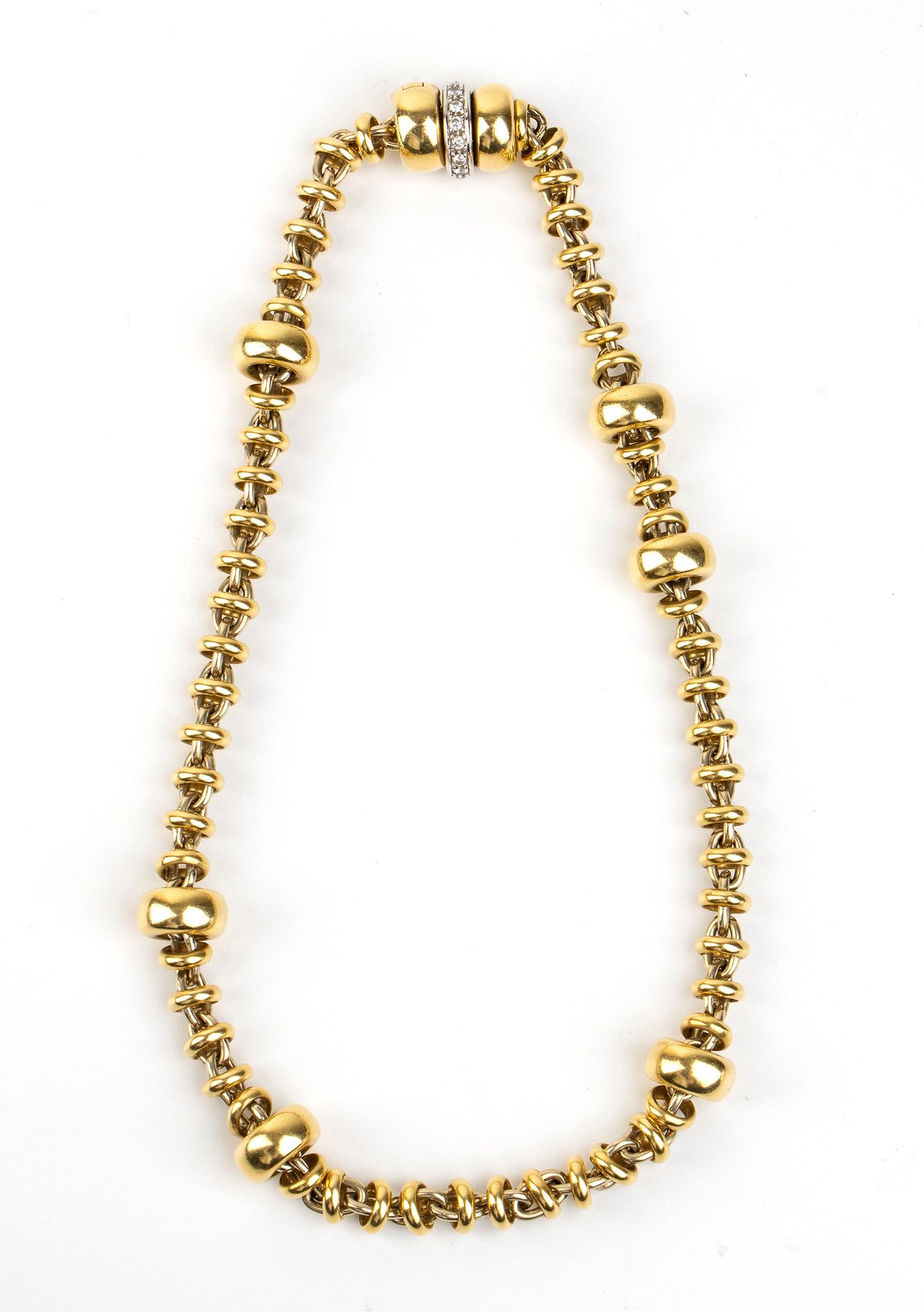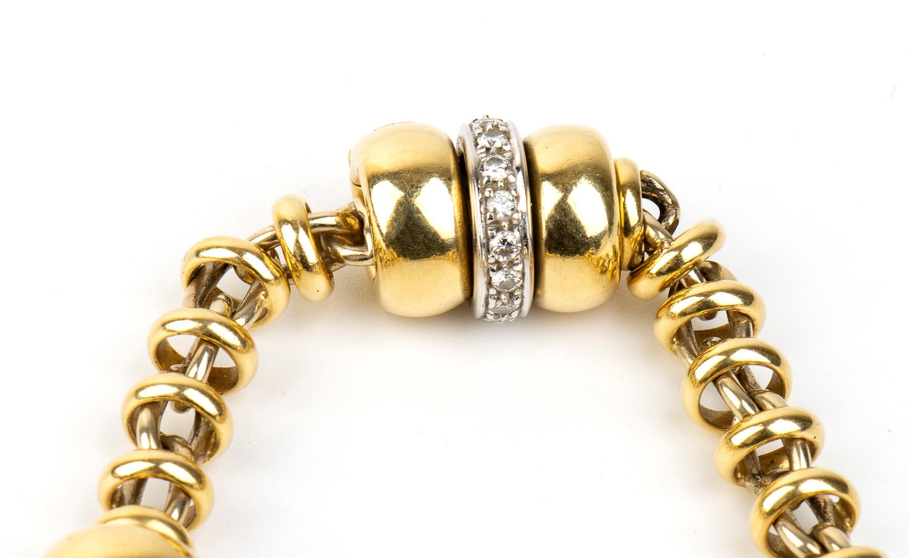 con maglie in oro giallo ed anello in oro bianco, 18k, dettagli in diamanti. Diamanti di forma rotonda taglio brillante 0.50 ct circa, F-G, IF-VVS.