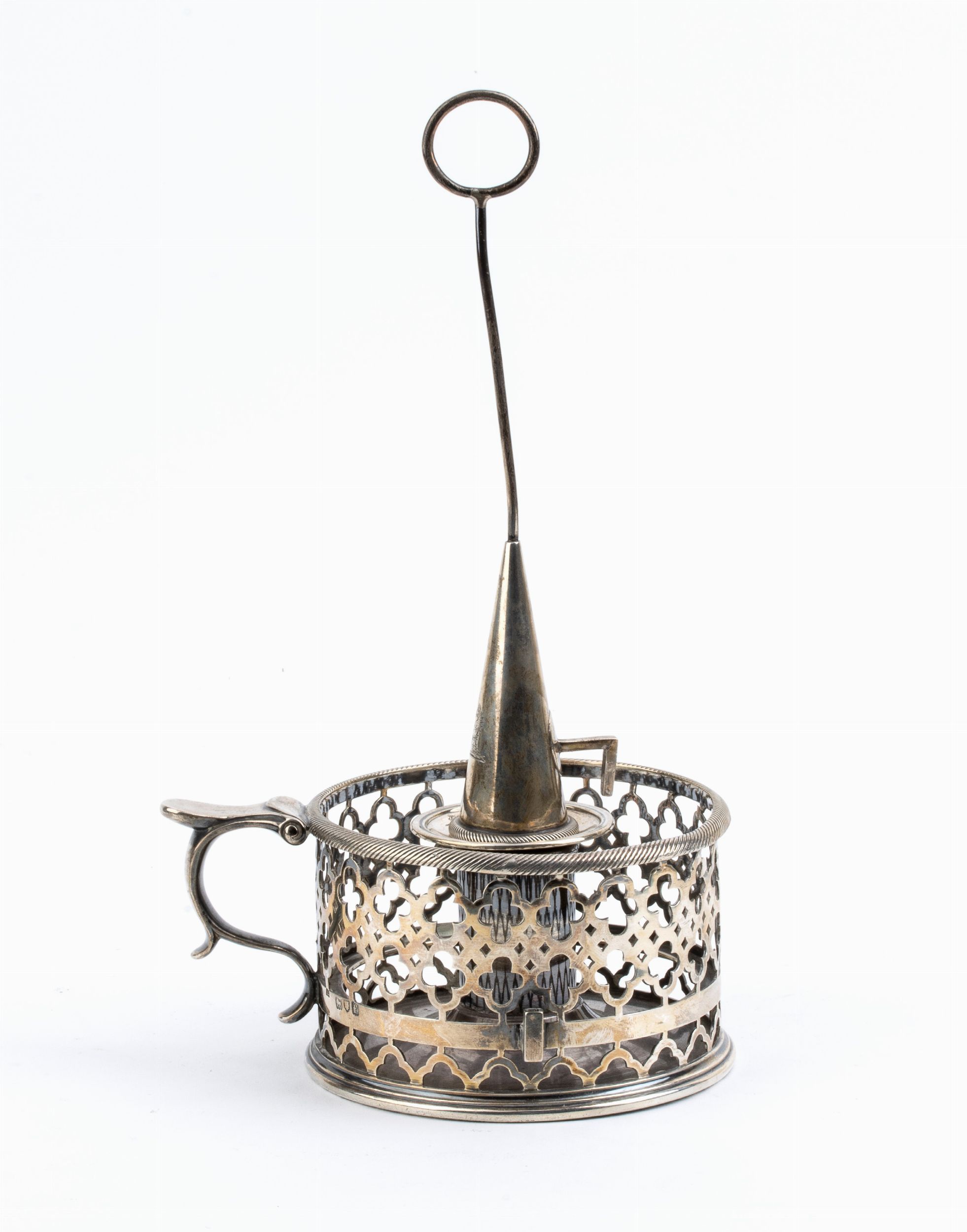 argento 800/1000.1) Porta candela dimensioni 6 x 13 cm. Punzonato R&S GARRARD & Co Londra.