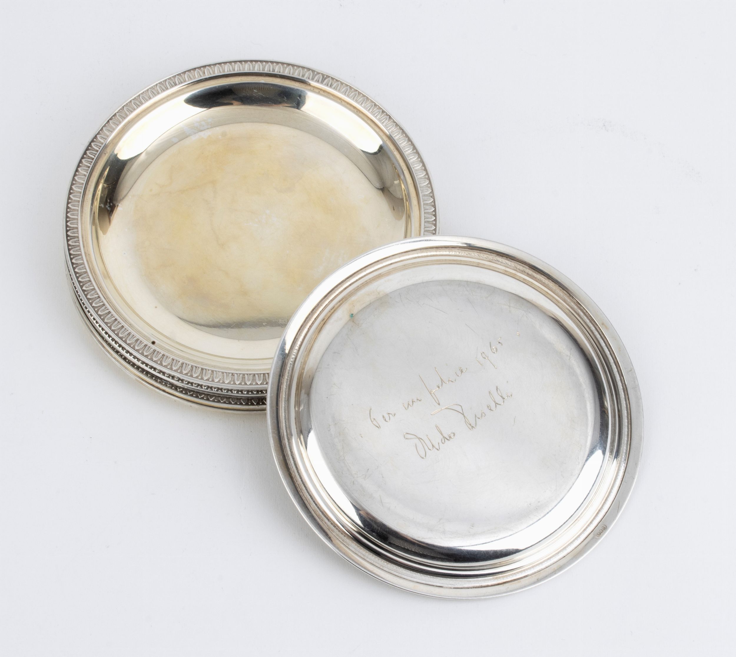 argento 800/1000.Punzonati 800 - NICOLETTI. Incisi Aldo Tiselli, Natale 1965, 1966, 1967, 1969, 1970.Stato di conservazione: **** buono.