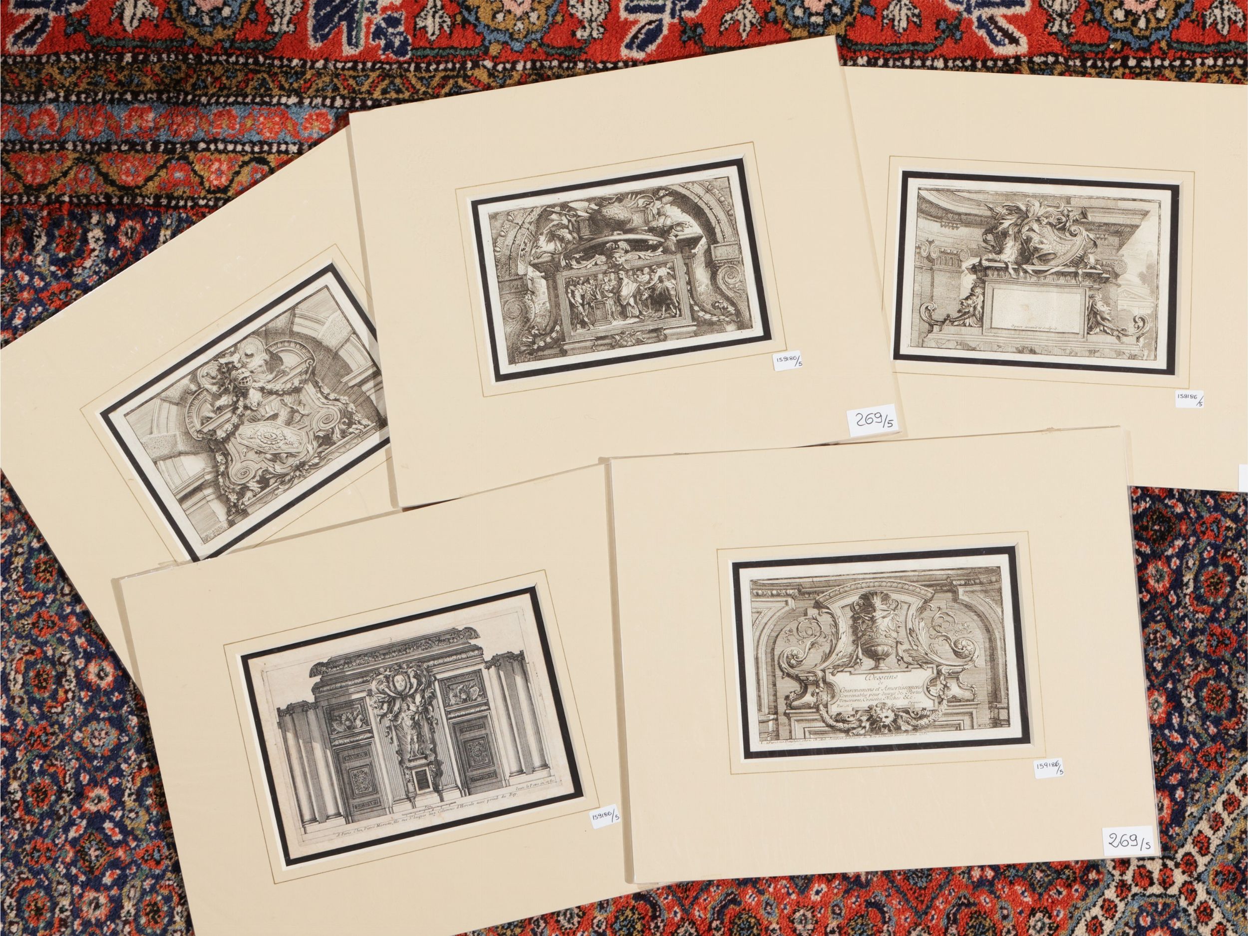 Metà del XVIII secolo cinque acqueforti, con passe-partout