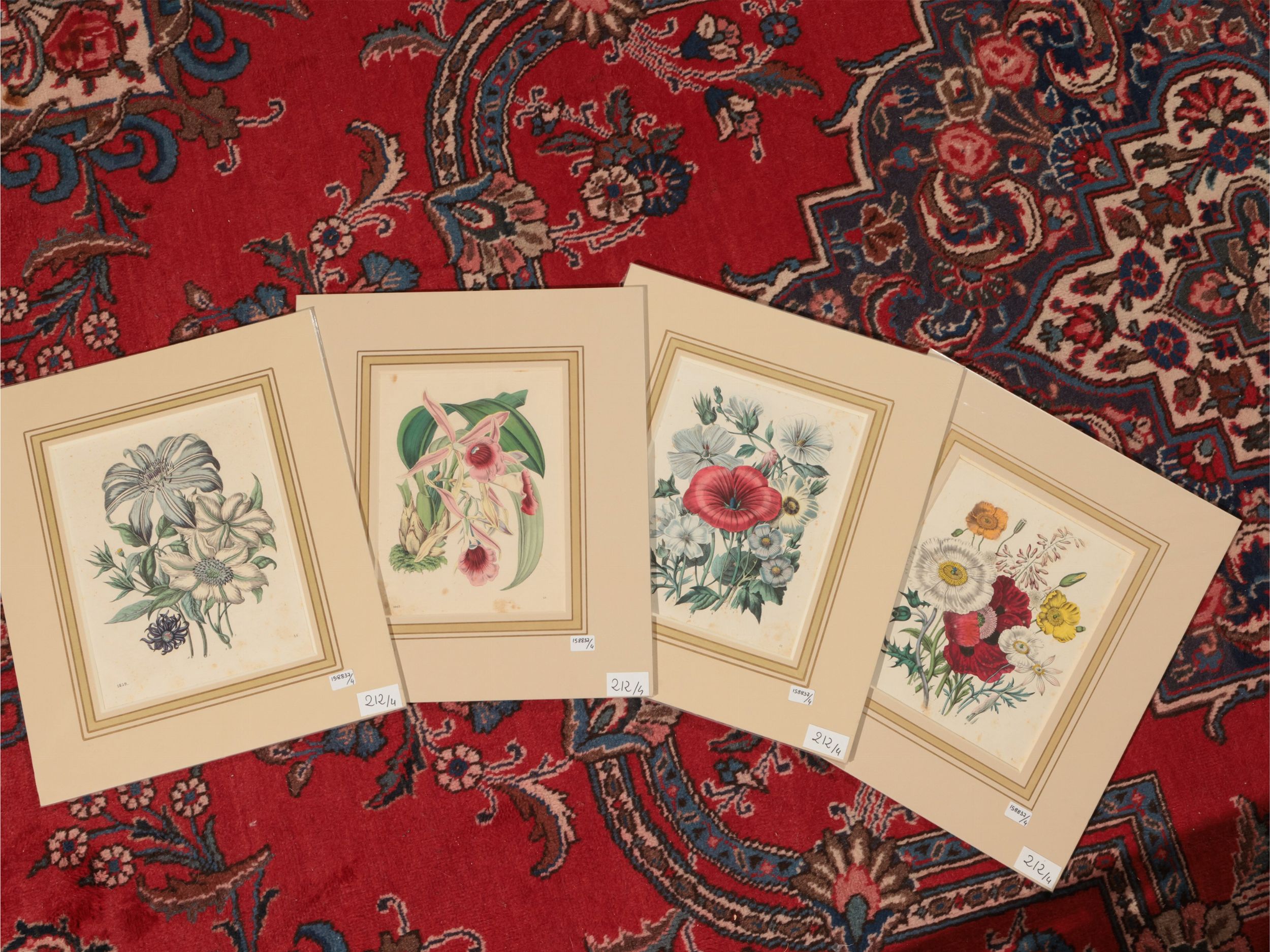 XIX secolo quattro litografie colorate, con passe-partout, tracce di foxing