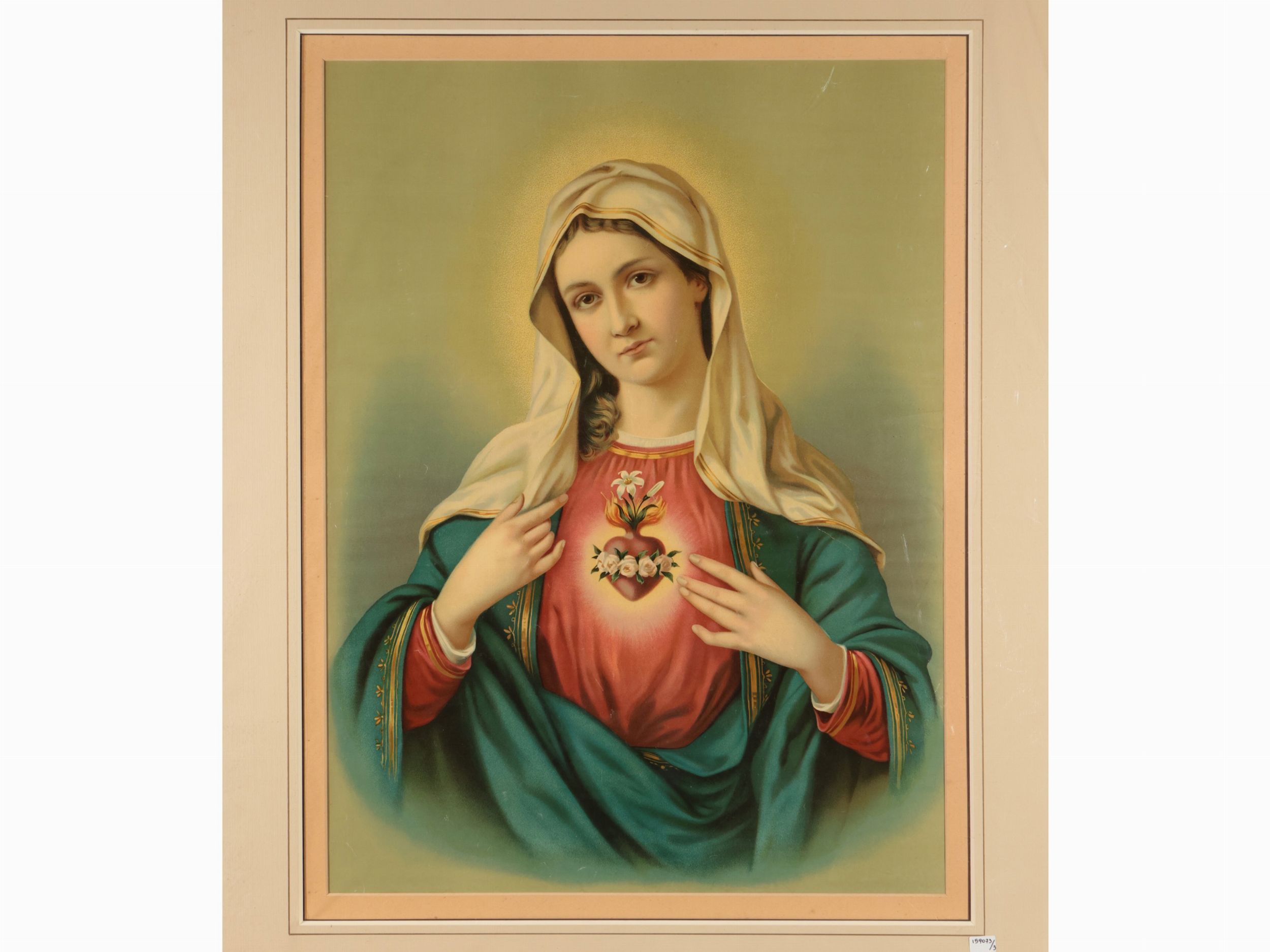 Fine del XIX inizio del XX secolo olio su tela abbinato a due cromolitografie, con passe-partout