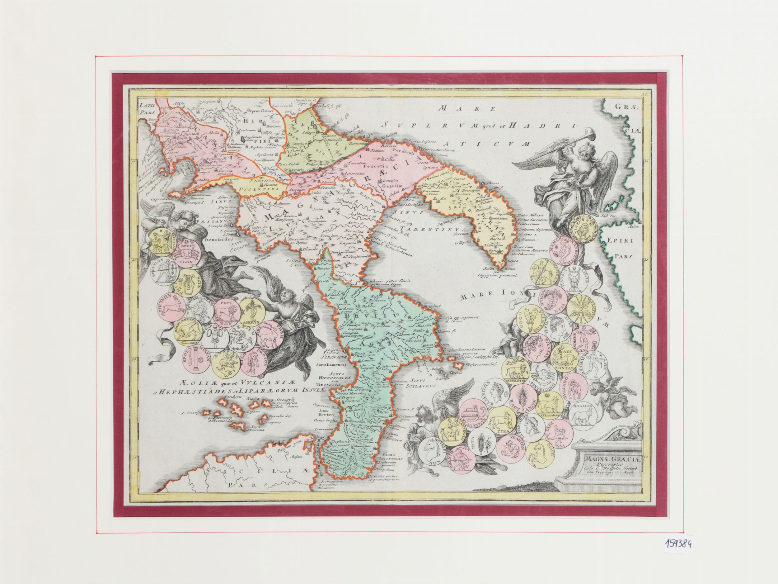 Inizio del XVIII secolo una incisione su rame, colorata, con passe-partout