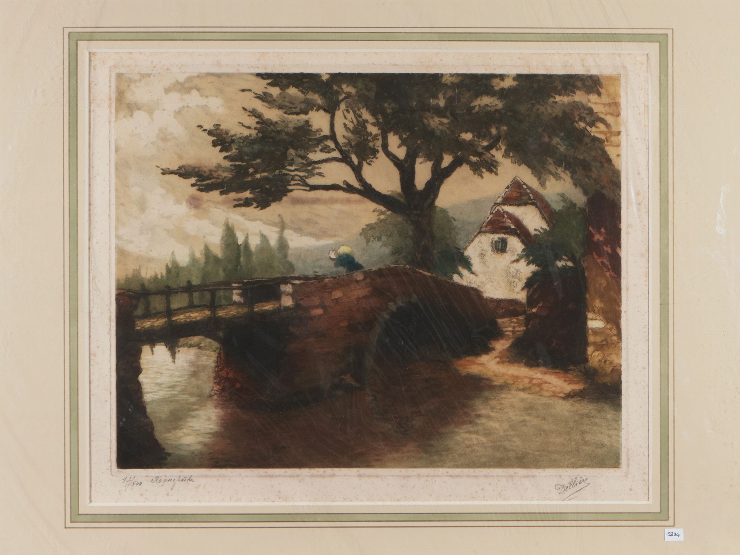 Inizio del XX secolo incisione colorata, firmata e numerata, con passe-partout, tracce di foxing