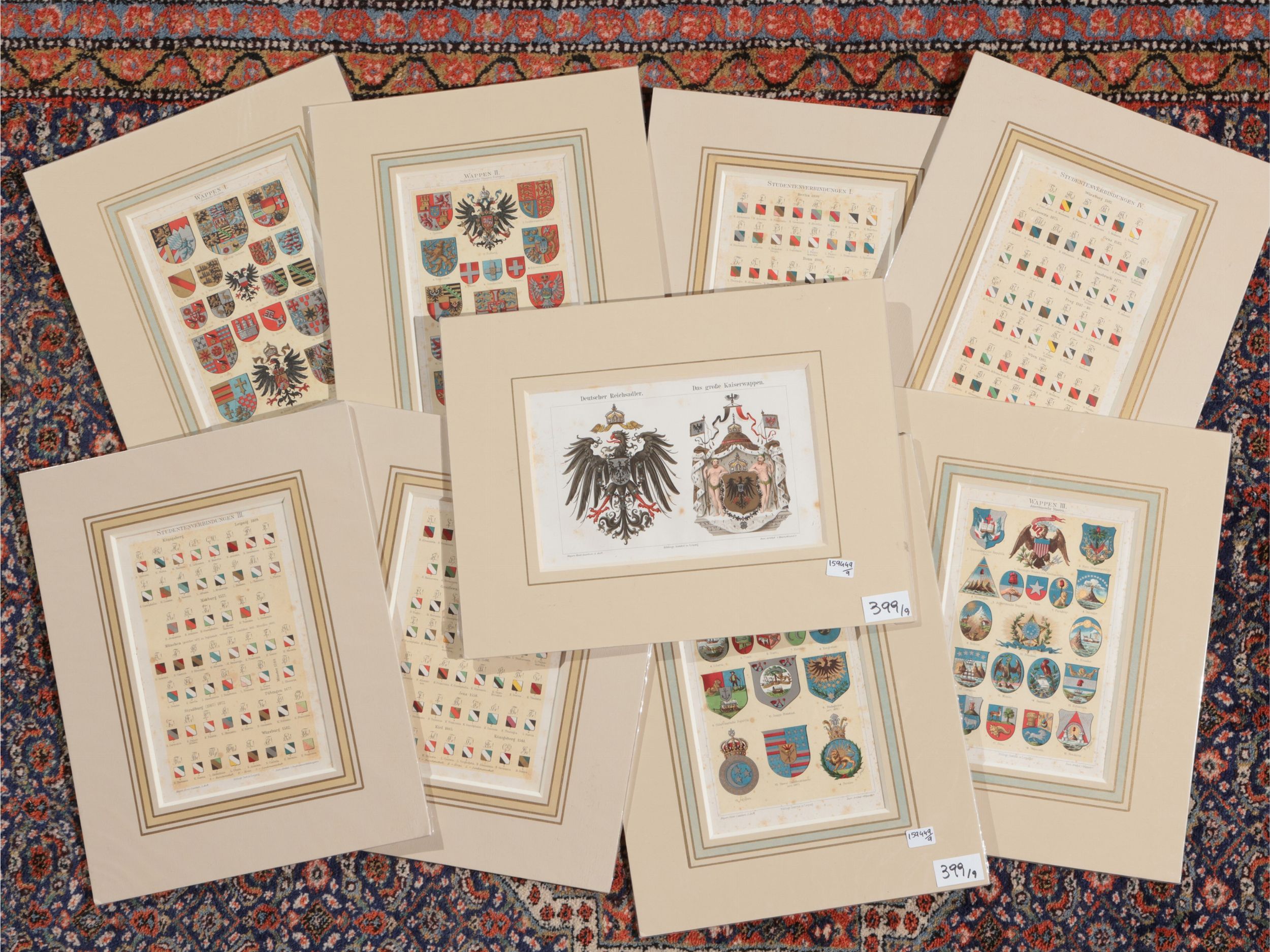 Seconda metà del XIX secolo nove cromolitografie, con passe-partout, tracce di foxing