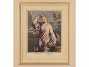 passe-partout cm 79x93,5 Inizio del XX secolo incisione colorata, firmata e numerata, con passe-partout, tracce [..]