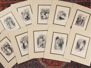 passe-partout cm 34x42,5 (12) Metà del XIX secolo dodici siderografie, con passe-partout, tracce di foxing