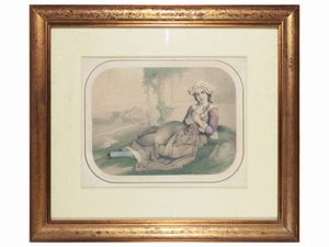 passe-partout cm 52,5x68,5 Fine del XIX secolo una litografia, colorata, con passe-partout, evidenti tracce di [..]
