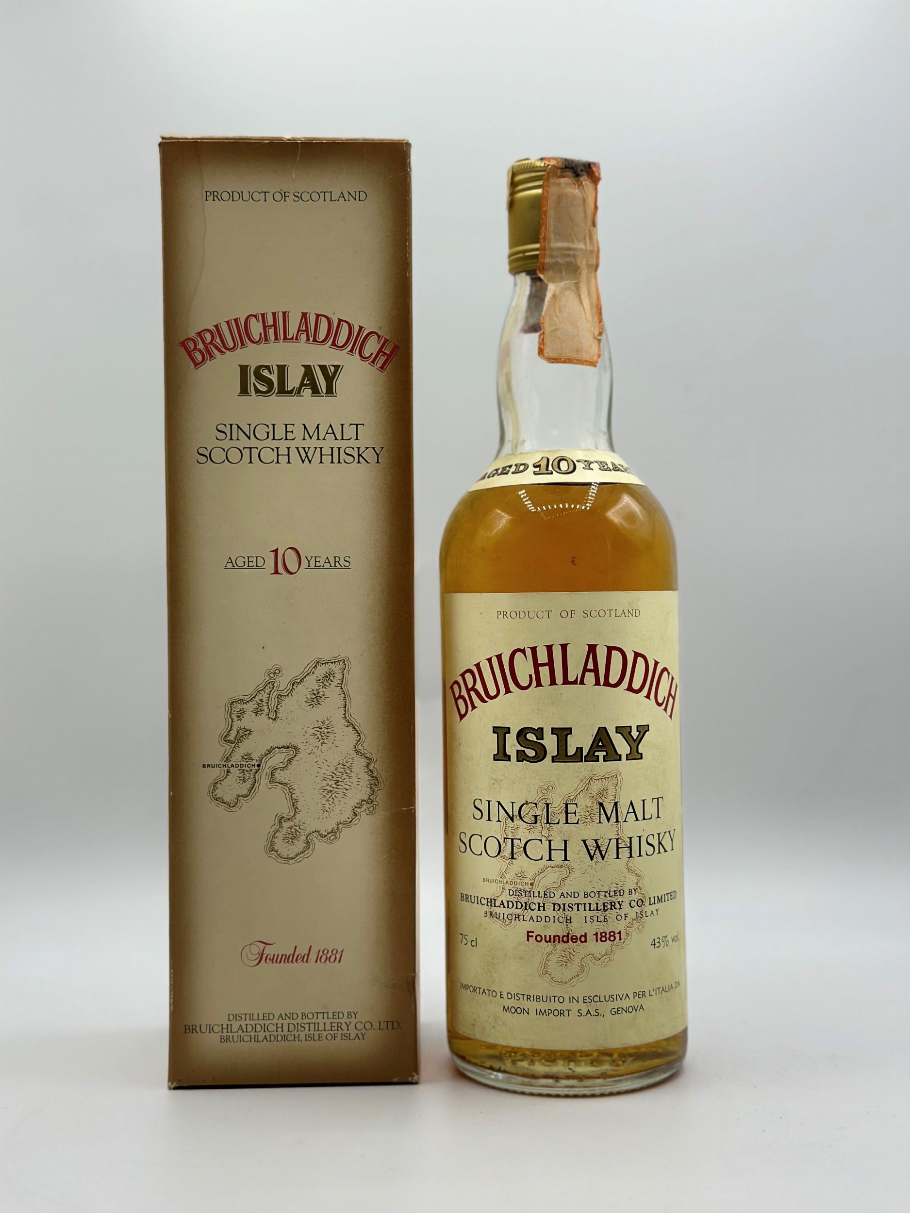NV Bruichladdich, Single Malt Scotch WhiskyScozia, Islay70 cl. - 53.5%1 btSConfezione : OCNote : Bottled in the 80's / Moon Import