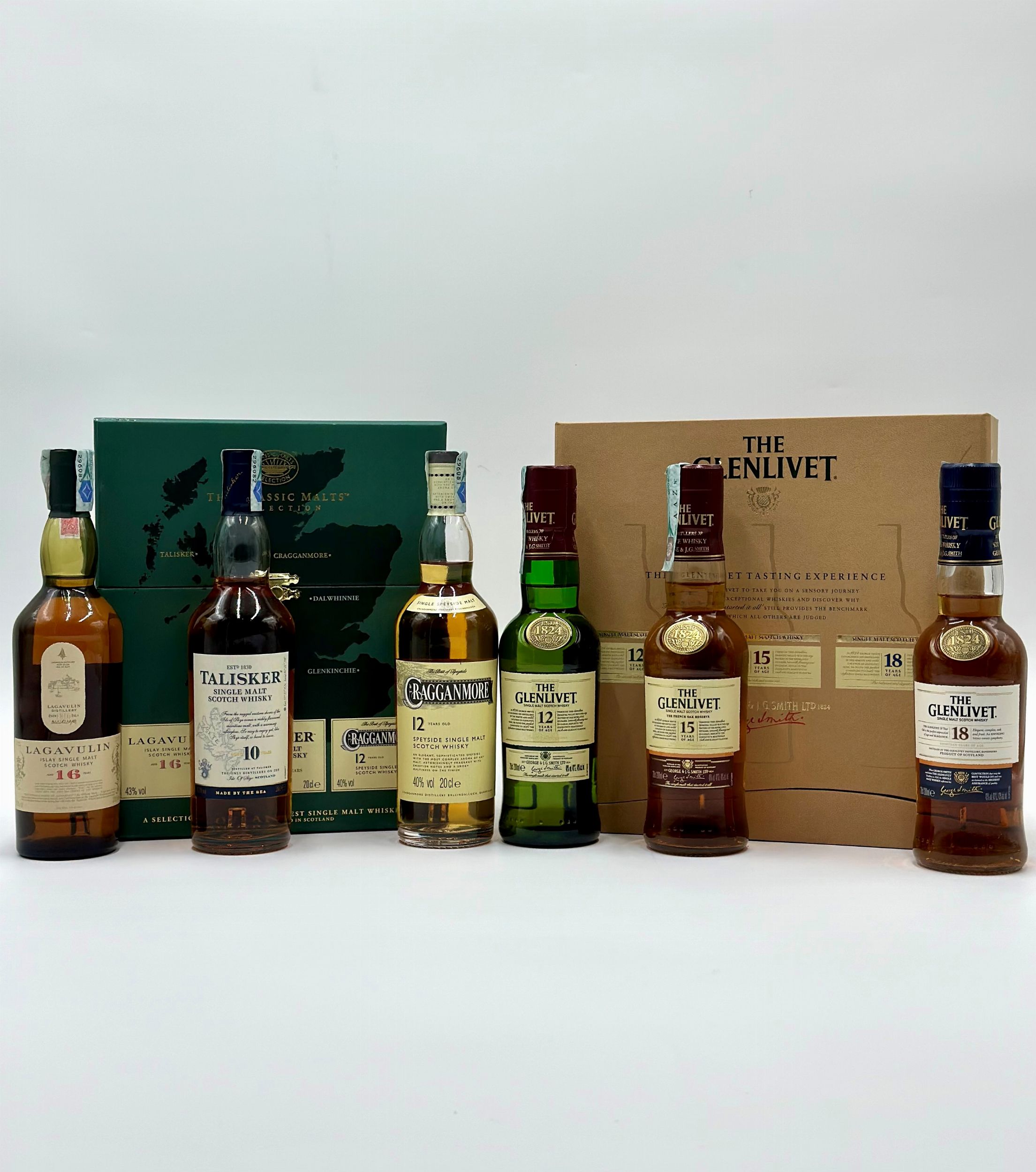 Cragganmore 12yo + Lagavulin 16yo + Talisker 10yo + Glenlivet 12yo-15yo-18yo - Original bottling - 20cl - 6 bottles