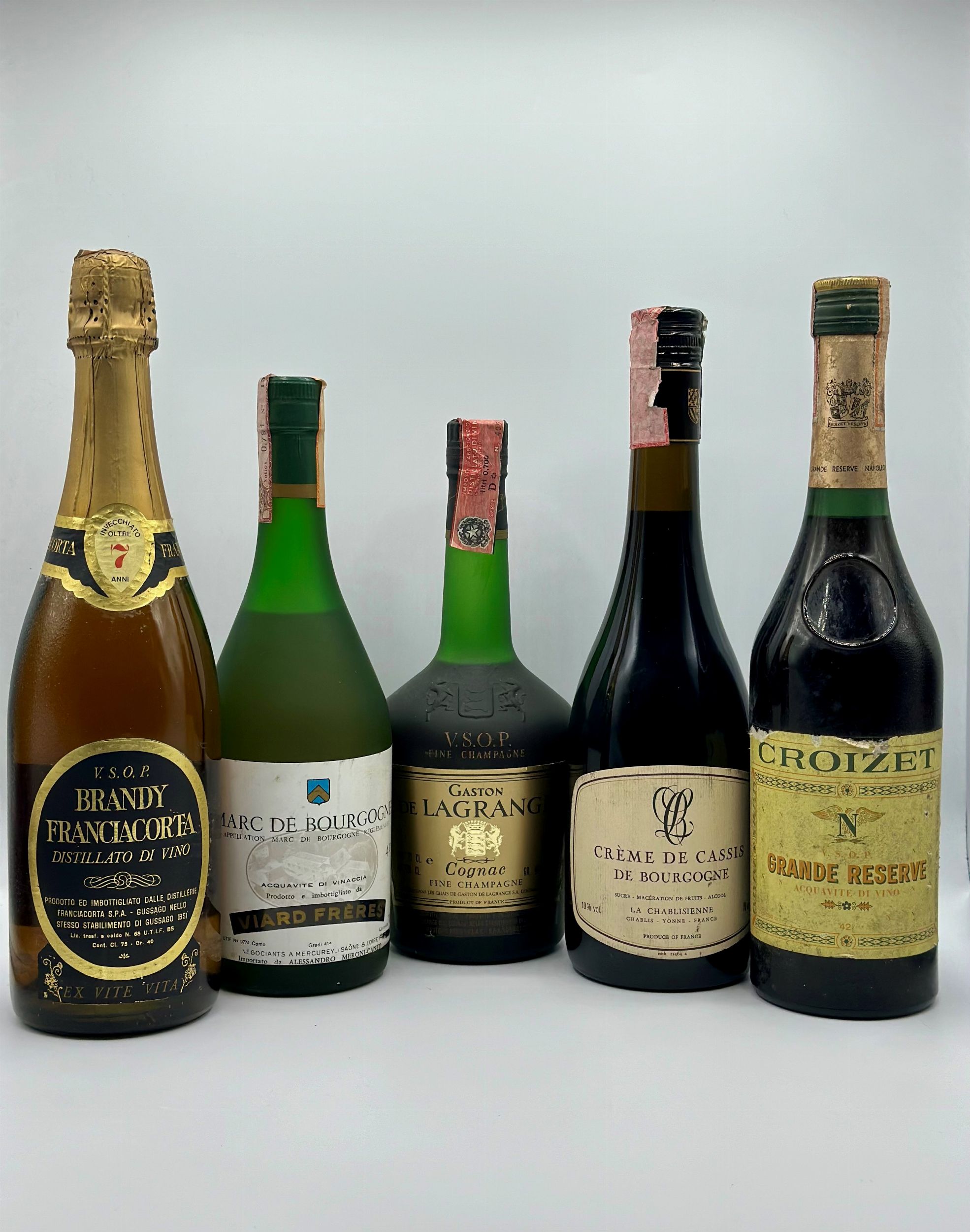 Brandy Franciacorta; Acquavite di vinaccia; Cognac; Crème de Cassis; Acquavite di vinoItalia; Francia5 btBN
