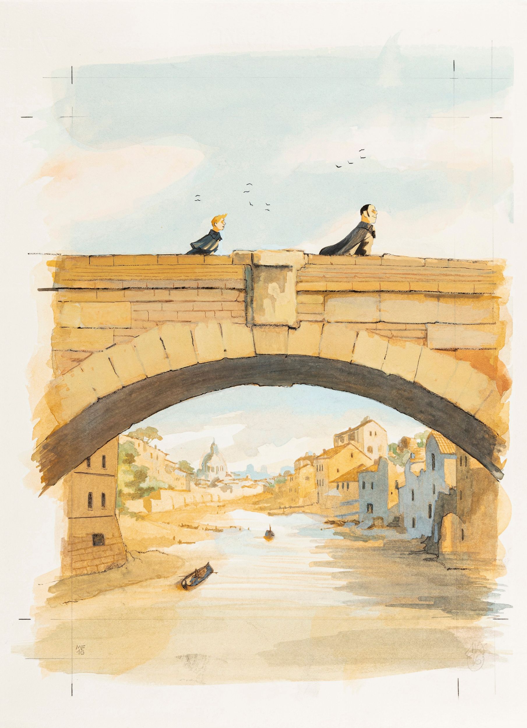 2016 Originale di copertina realizzato da Fior per A passeggio per Roma, edito su Mercurio Loi n. 6 dalla Bonelli nel 2017. Manuele Fior è uno degli autori più apprezzati e amati nel nostro Paese e all’estero, ed è tra i pochi fumettisti italiani ad aver vinto il prestigioso premio Fauve d’Or del Festival internazionale di Angoulême, collabora con riviste e giornali come il New Yorker, Le Monde, Vanity Fair, e in Italia con Repubblica e il Sole 24 Ore. Firmato e datato.