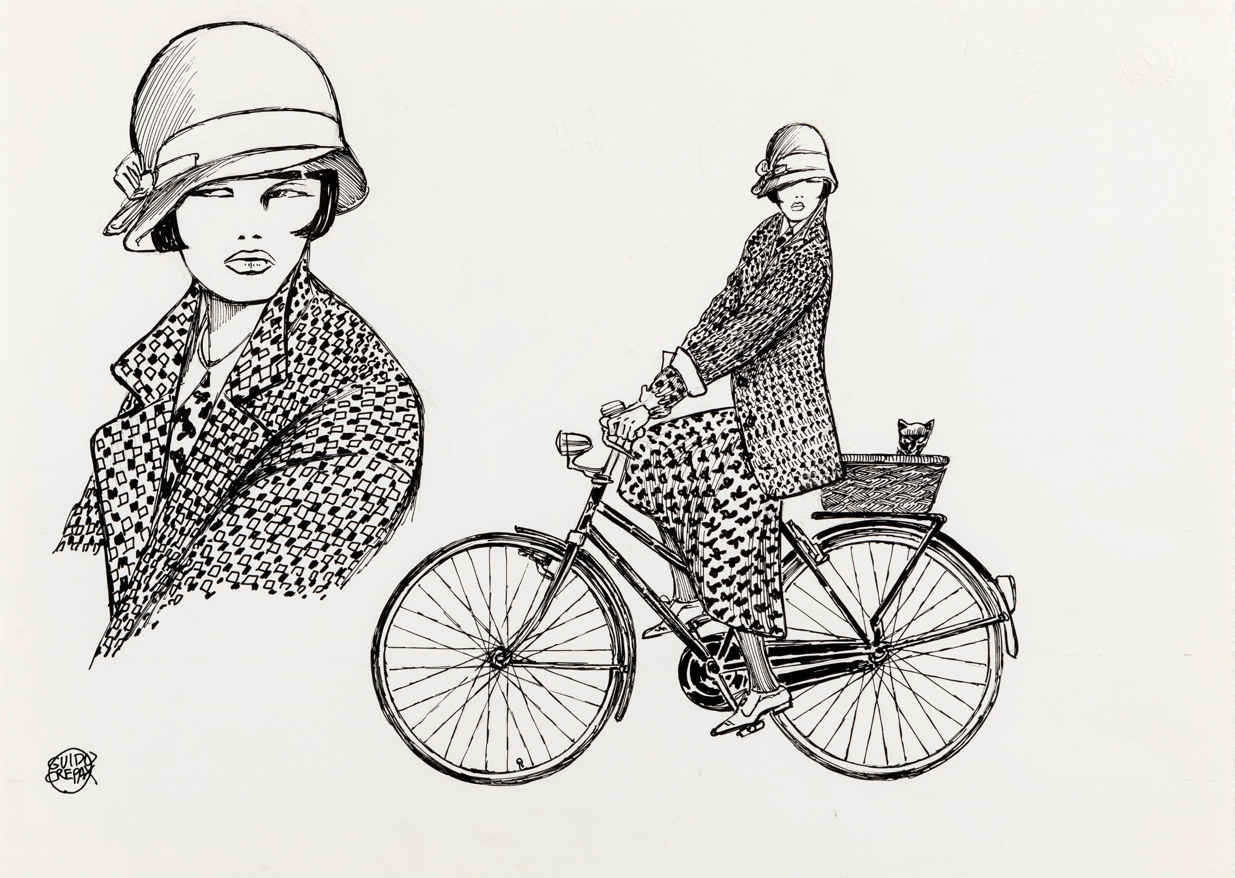 matita e china su cartoncino, 35 x 25,5 cm 1988 Illustrazione originale realizzata da Crepax per il volume Tipi metropolitani di Valentina Crepax, edito da Mondadori nel 1988. Opera utilizzata successivamente per la campagna di tesseramento Ciclobby di Milano per l’anno 1989, che pubblicò quest’opera in un calendario promozionale da distribuire ai tesserati. Firmata.