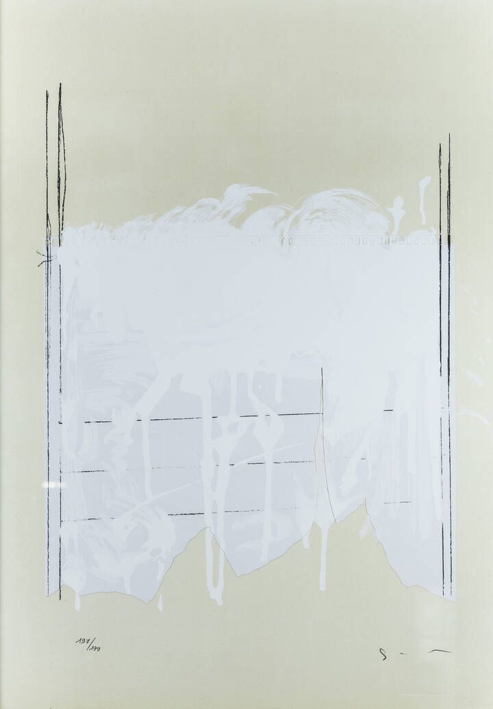70x50 litografia con applicazione es. 197/199 Opera firmata in basso a destra e numerata in basso a sinistra (a matita)