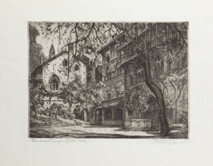 FRANCESCO MENNYEY Torino 1889 - 1950 : Torino-Borgo Medioevale  - Asta Grafica - Associazione Nazionale - Case d'Asta italiane