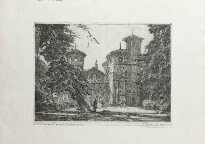 FRANCESCO MENNYEY Torino 1889 - 1950 : Torino-Borgo Medioevale  - Asta Grafica - Associazione Nazionale - Case d'Asta italiane