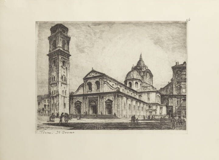 FRANCESCO MENNYEY Torino 1889 - 1950 : Torino-Il Duomo  - Asta Grafica - Associazione Nazionale - Case d'Asta italiane