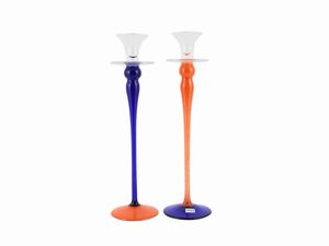 h cm 45,5 (2) Repubblica Ceca, anni 80/90 in vetro soffiato con lungo stelo e applicazioni a caldo in vetro multicolore. [..]