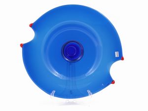 h cm 9, diam cm 40 Repubblica Ceca, anni '80/90 in vetro soffiato blu con applicazione a caldo di piccole sfere [..]