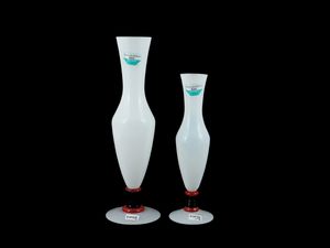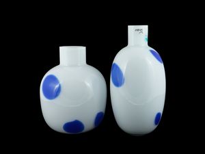 h da cm 22,5 a cm 28 (2) Repubblica Ceca, anni '80/90 in vetro bianco lattimo con inclusioni blu tra i due strati. [..]