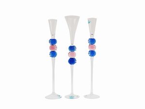 h da cm 44 a cm 45 (3) Repubblica Ceca, anni 80/90 in vetro trasparente, gambo con applicazioni in vetro blu [..]