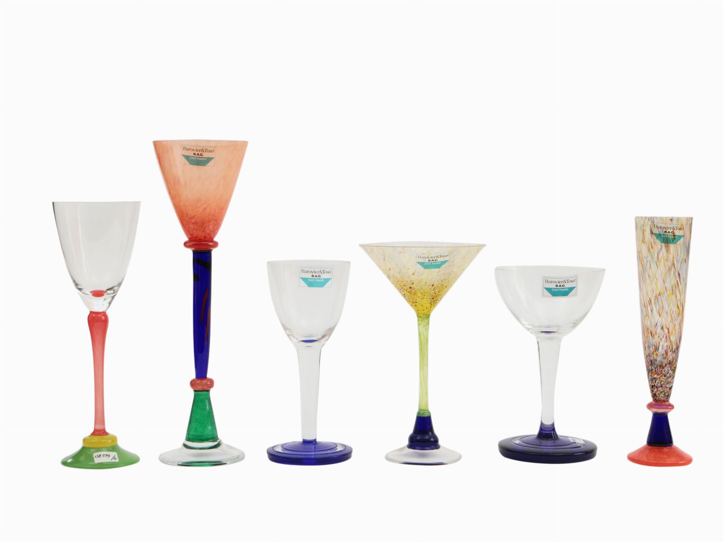 Sei bicchieri in vetro multicolore Barovier & Toso della serie B.A.G.