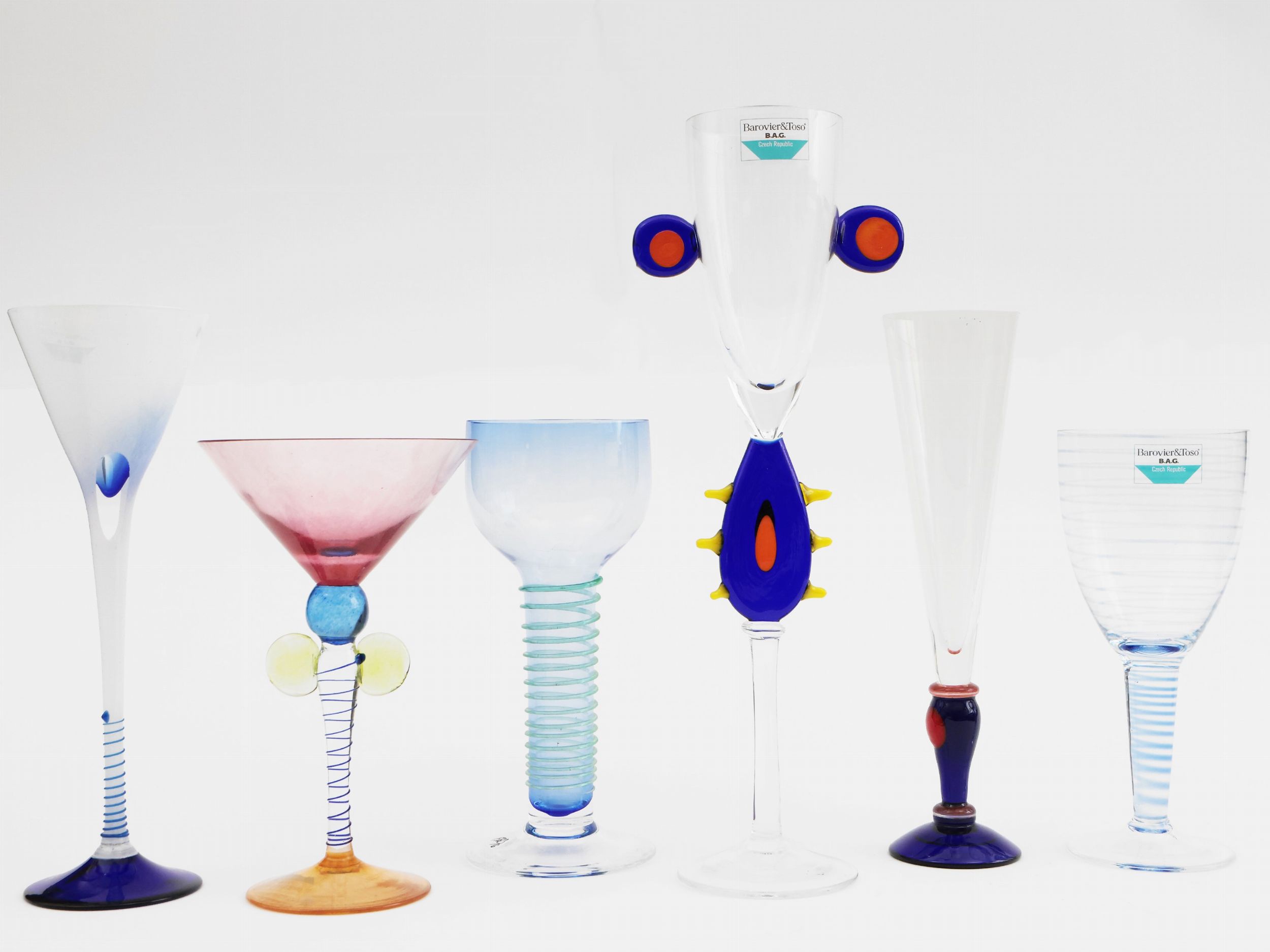 Sei bicchieri in vetro soffiato multicolore Barovier & Toso della serie B.A.G.