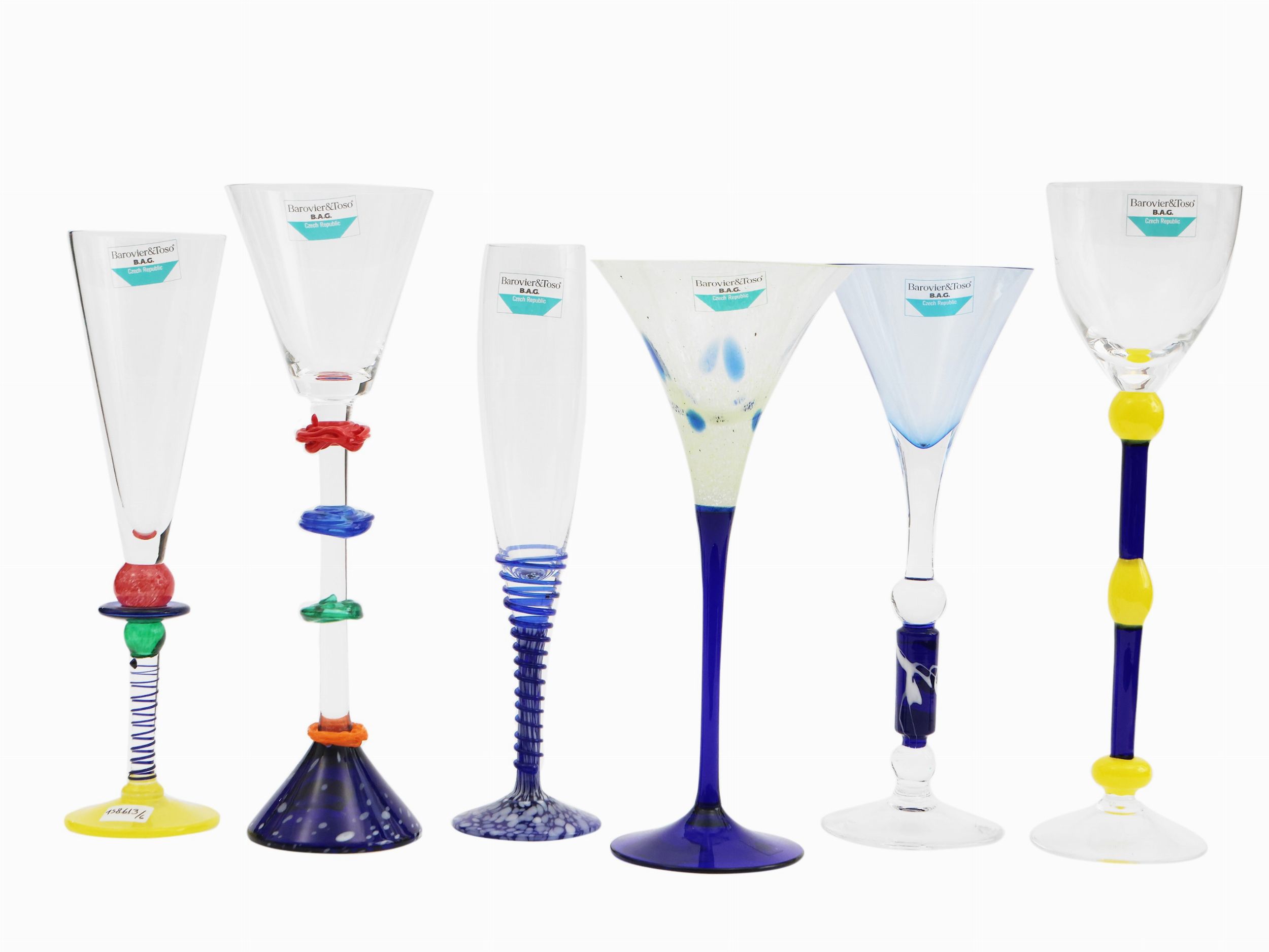 Sei bicchieri in vetro soffiato multicolore Barovier & Toso della serie B.A.G.