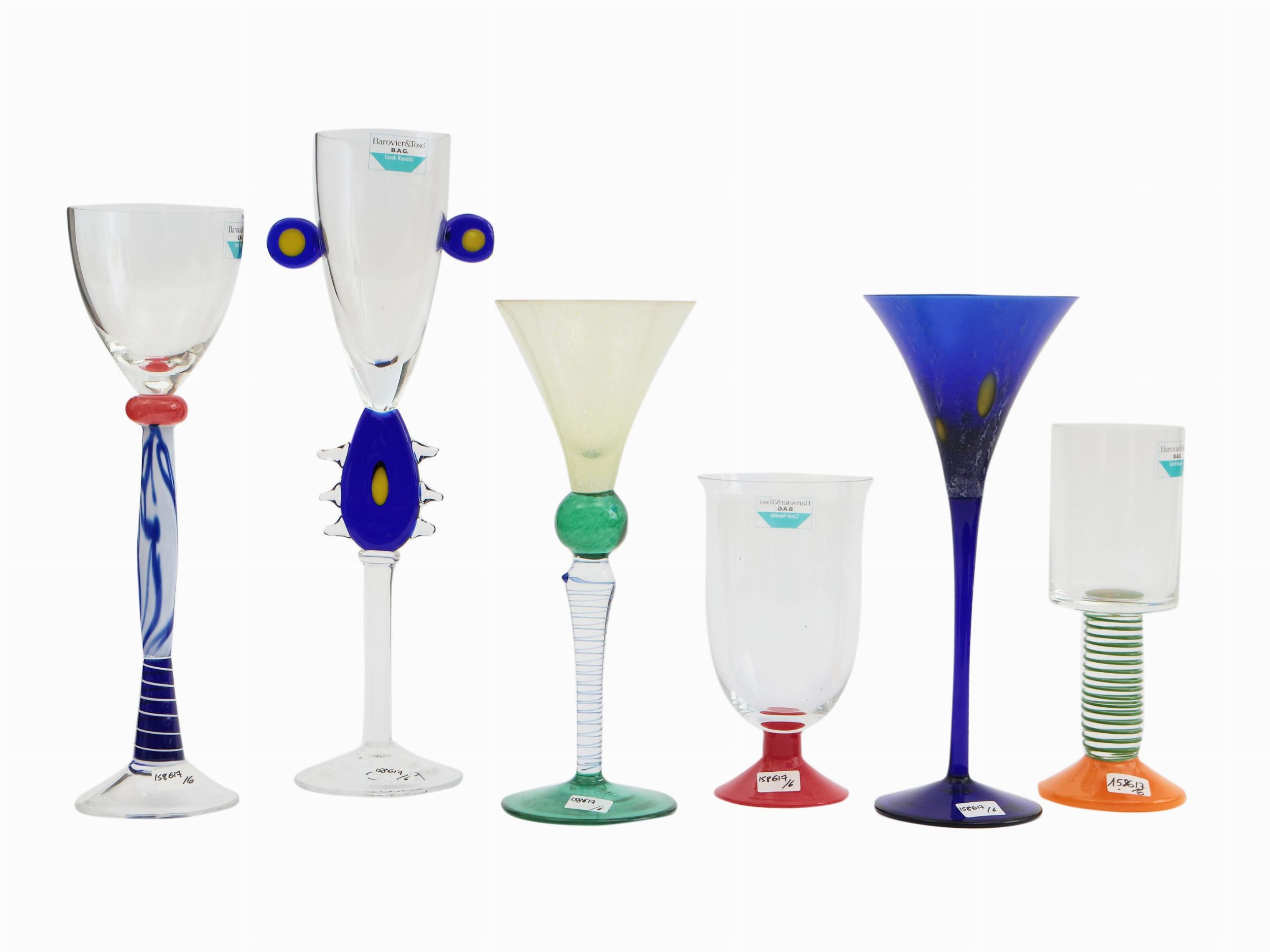 Sei bicchieri in vetro soffiato multicolore Barovier & Toso della serie B.A.G.