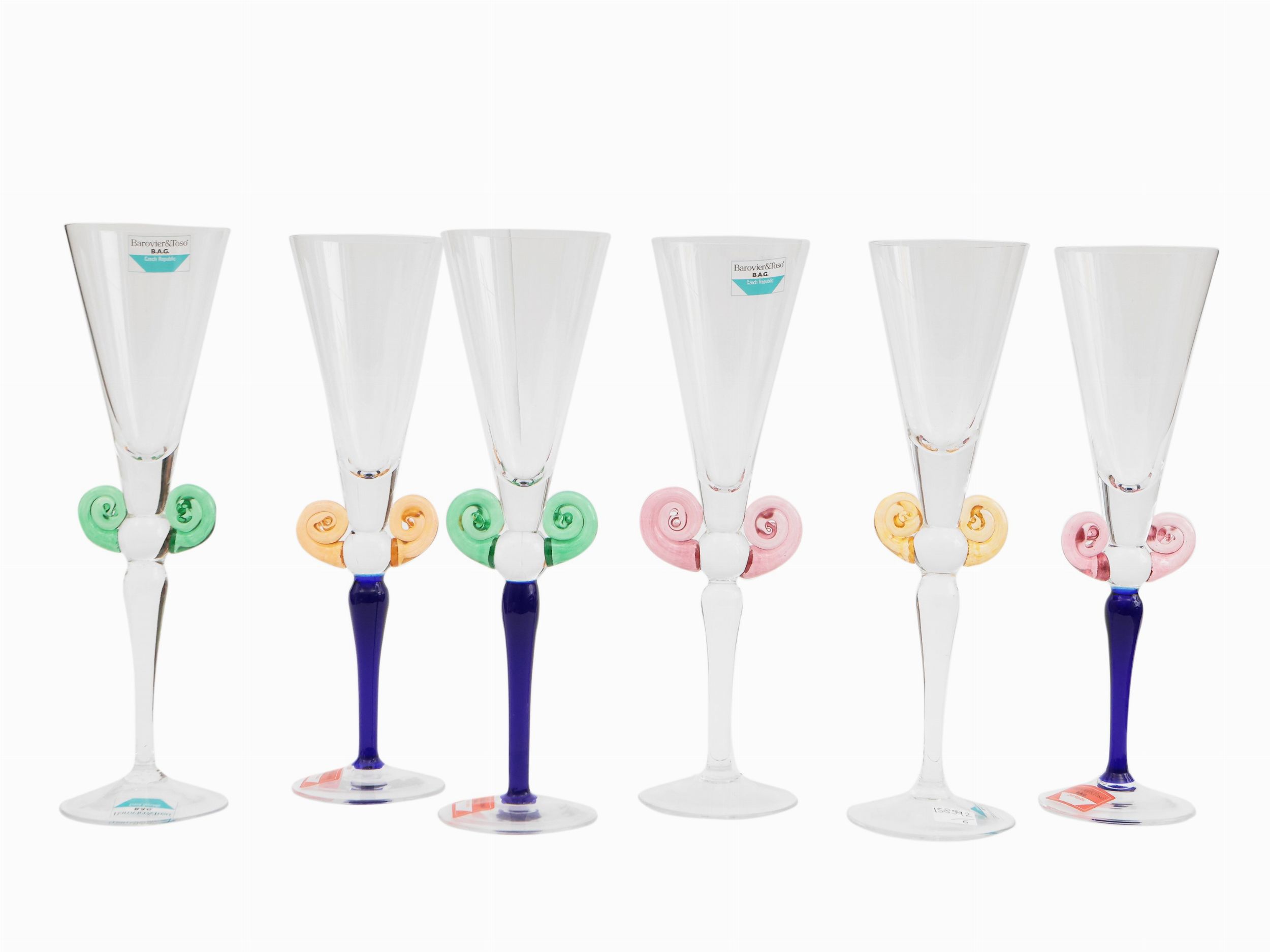 Serie di sei calici Barovier & Toso della serie B.A.G.