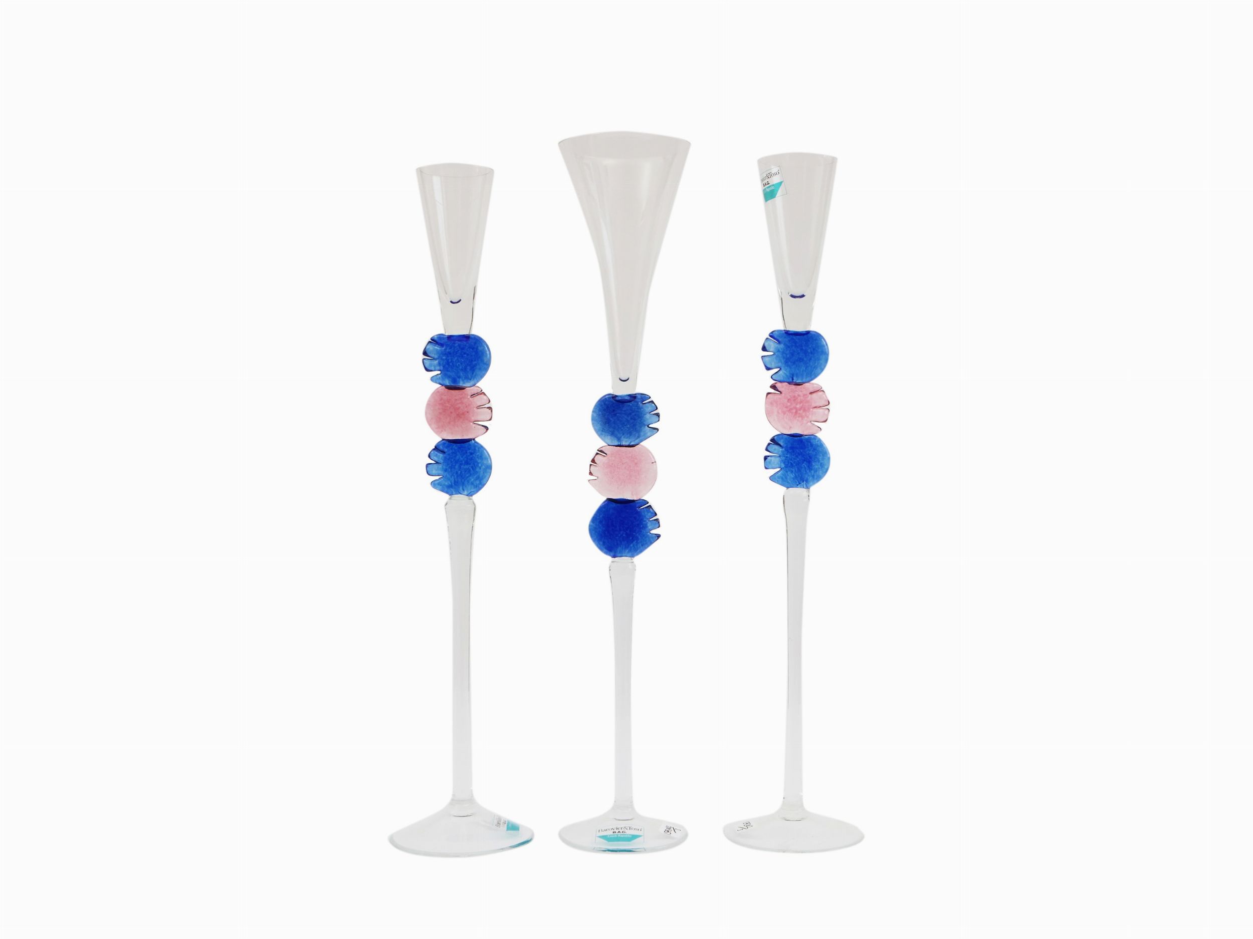 Serie di tre alti calici Barovier & Toso della serie B.A.G.