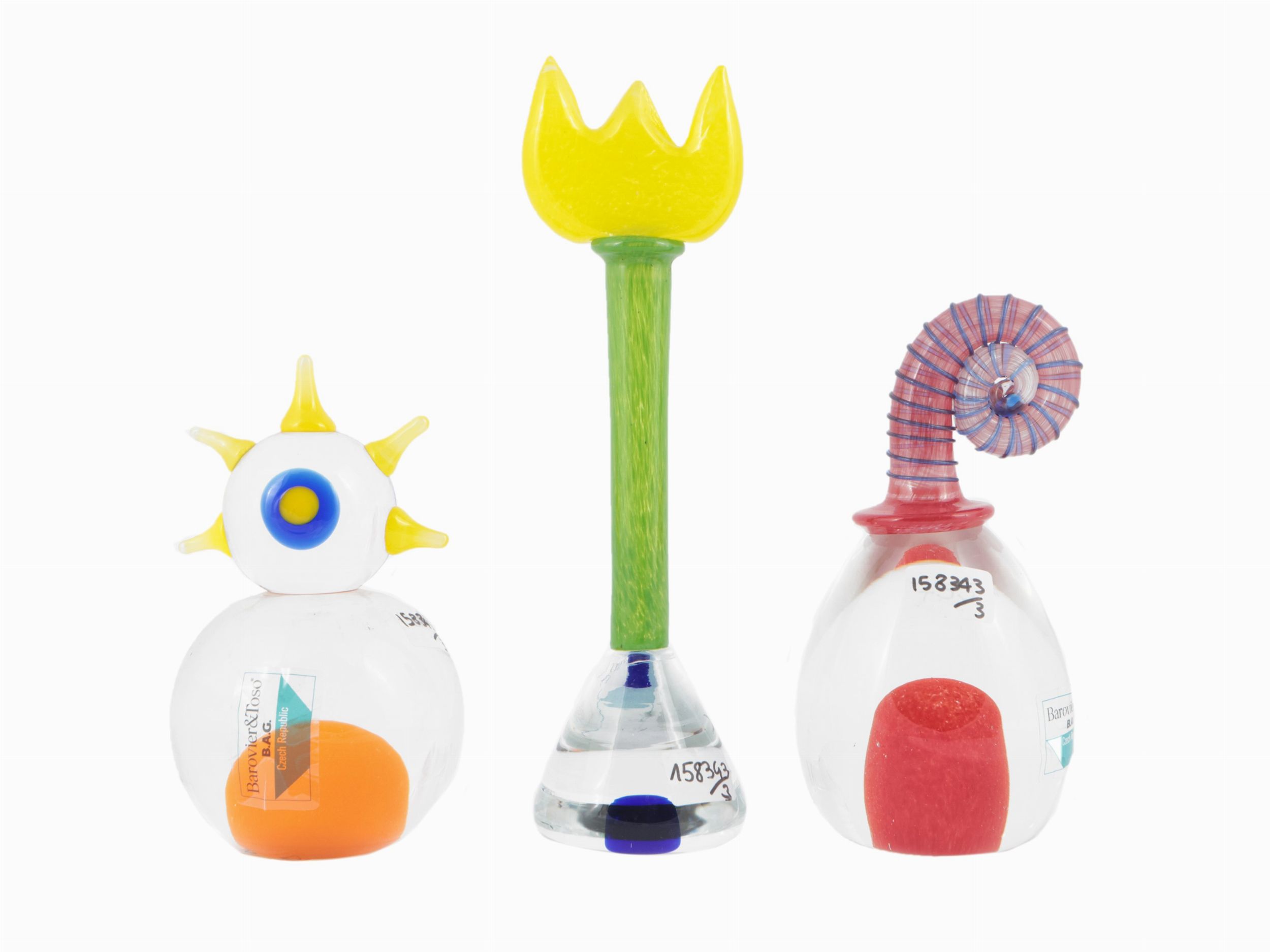 Tre sculture in vetro Barovier & Toso della serie B.A.G.