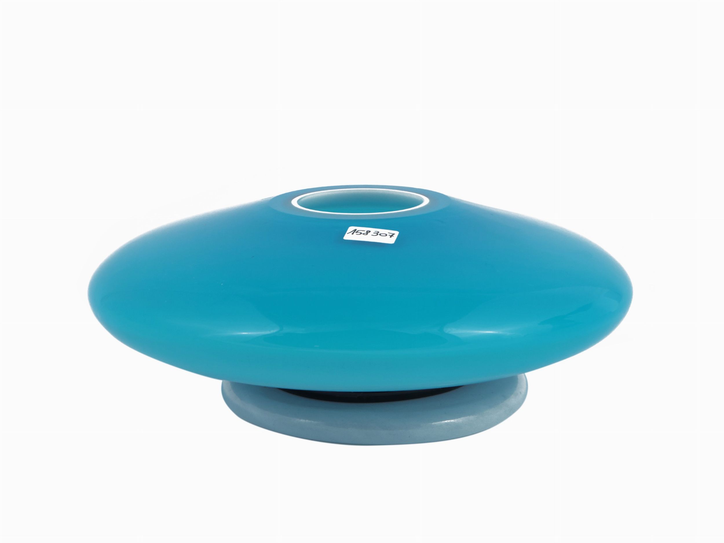 Repubblica Ceca, anni '80/90 in vetro lattimo azzurro cielo, piede in vetro applicato a caldo. Reca etichetta cartacea.