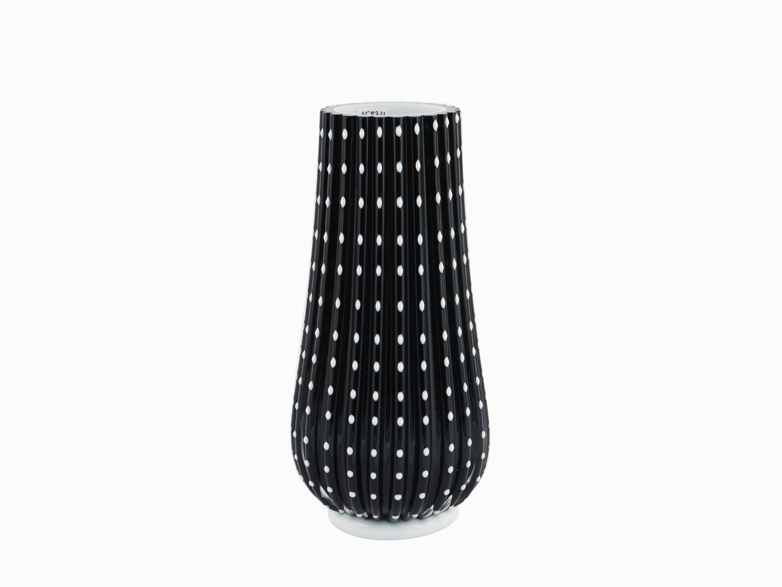Repubblica Ceca, anni '80/90 in vetro nero a puntini lattimo base applicata a caldo. Reca etichetta cartacea.