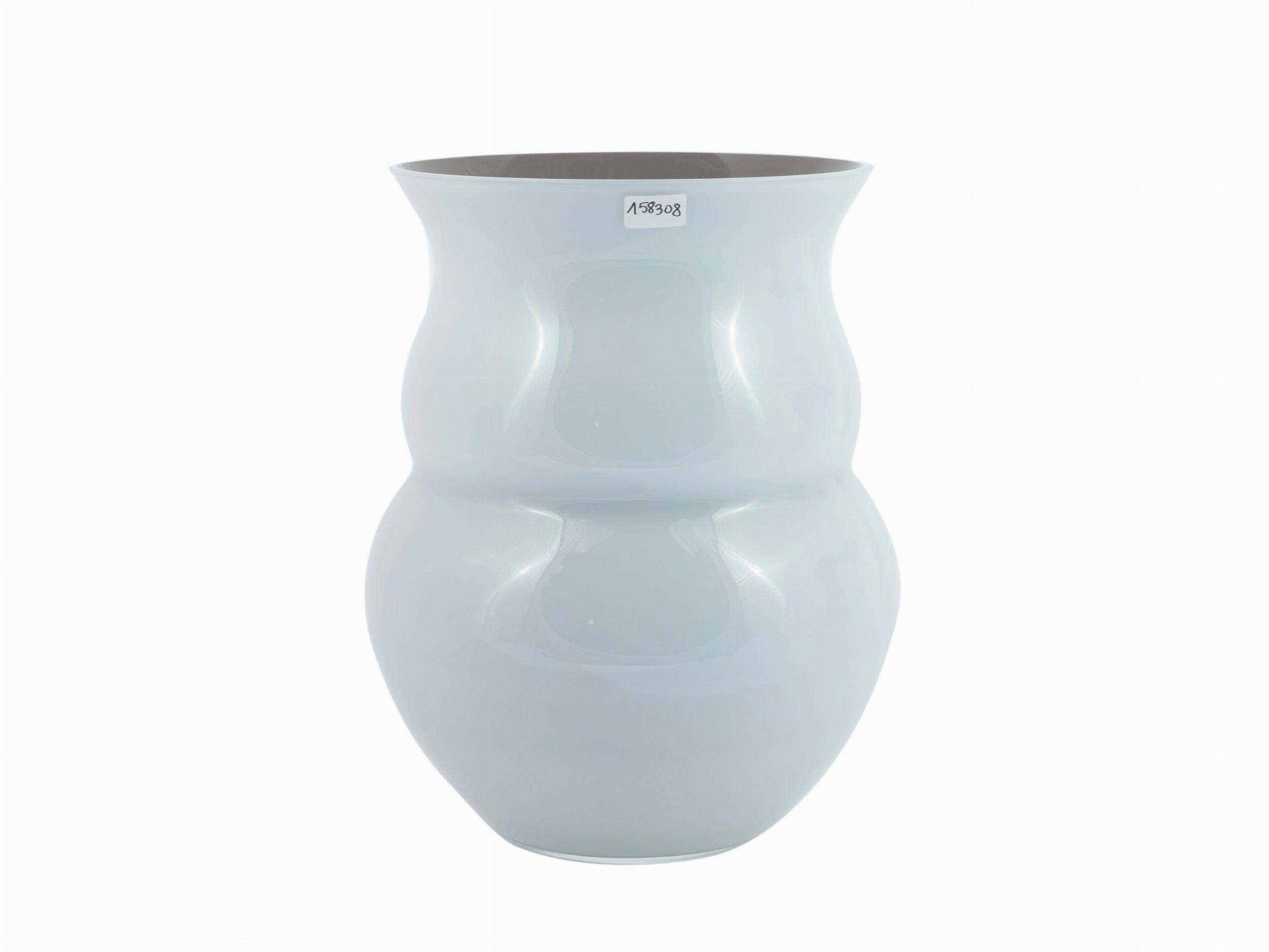 Repubblica Ceca, anni 80/90 in vetro incamiciato a due colori grigio e lattimo con strozzatura sul corpo. Firma sotto la base design Barovier & Toso.