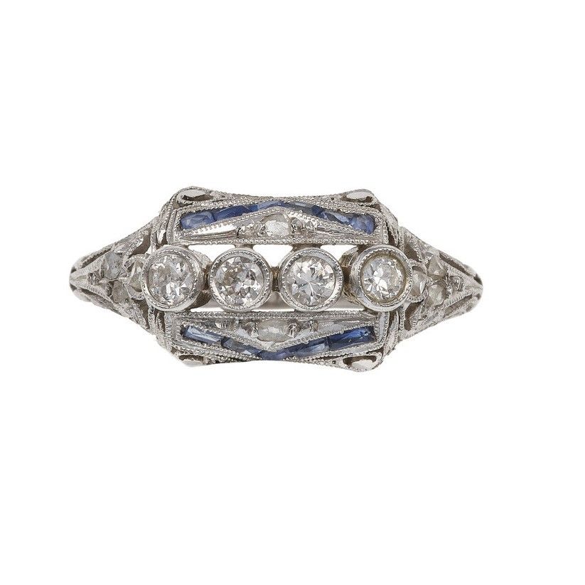 Anello con piccoli diamanti di vecchio taglio e zaffiri