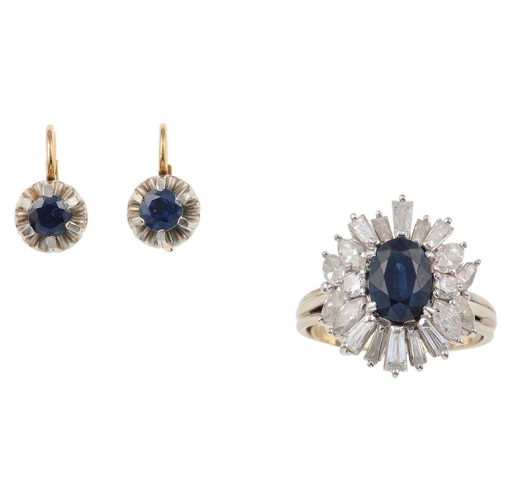 Demi-parure composta da anello ed orecchini con zaffiri e diamanti