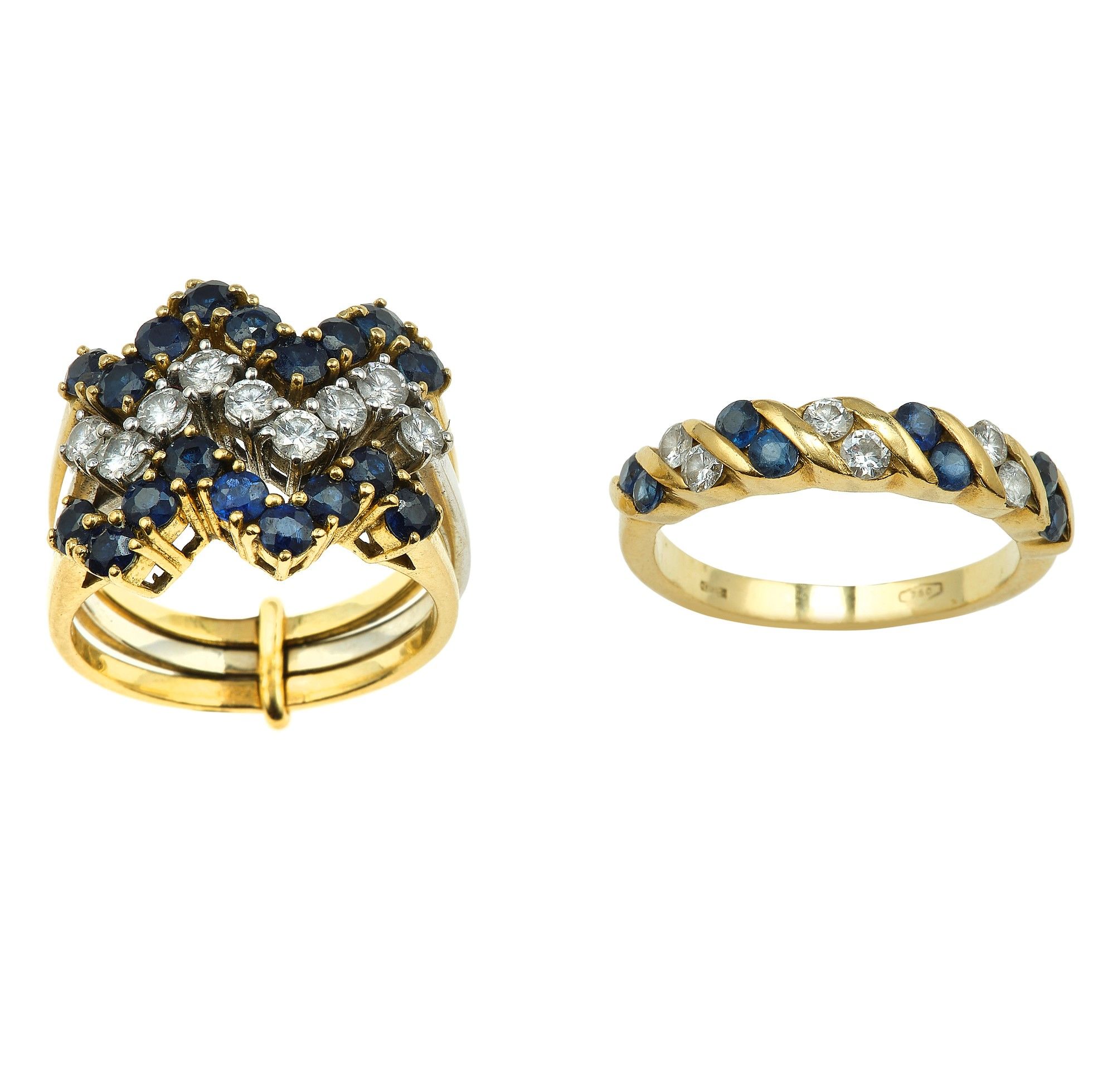 Due anelli con diamanti e zaffiri
