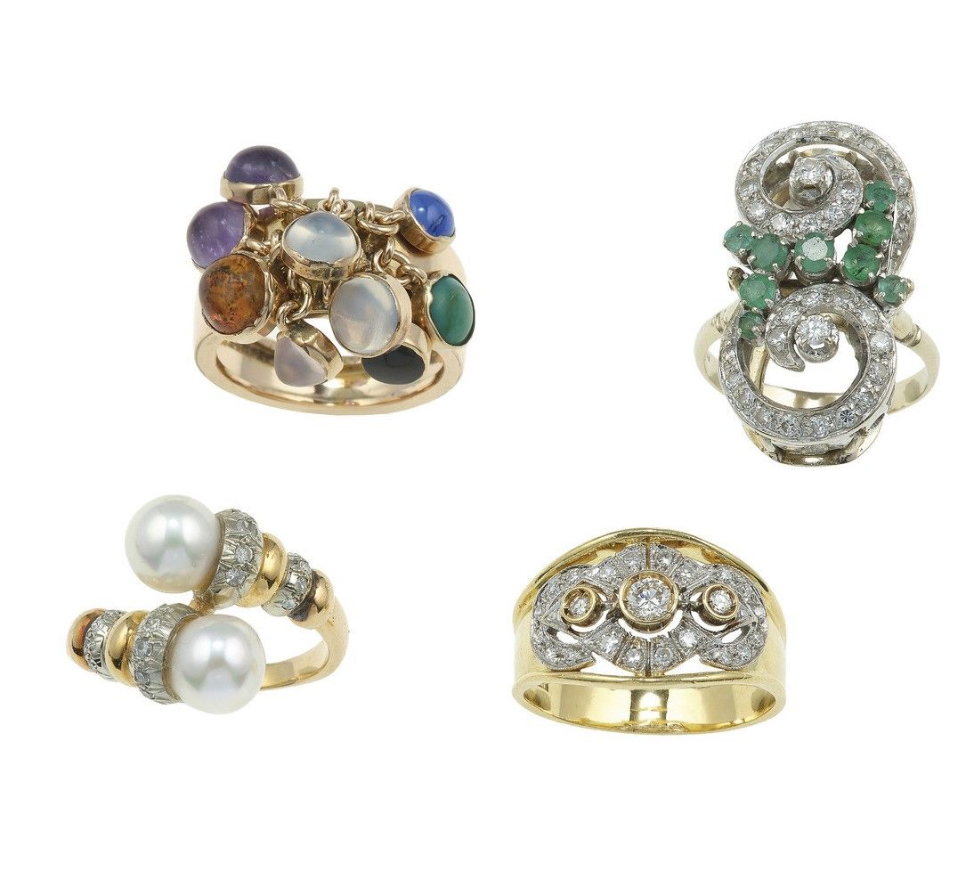 Lotto composto da quattro anelli con gem-set