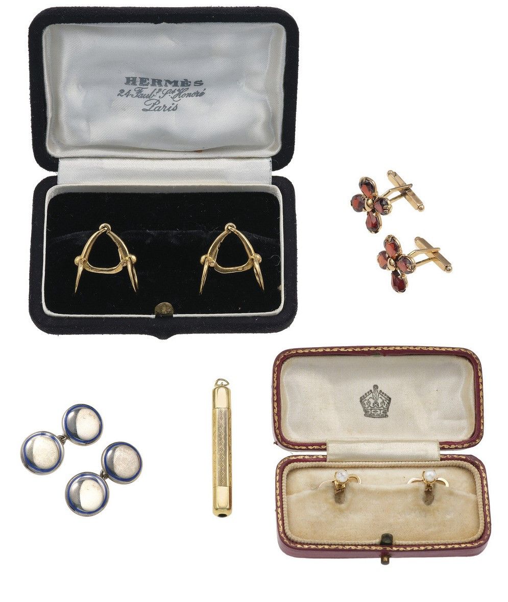 Lotto composto da tre paia di bottoni da polso, un paio di bottoni da sparato ed [..]