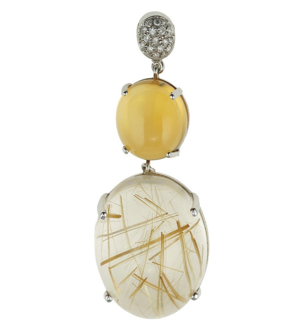 Pendente con quarzo rutilato, quarzo giallo e pavé di diamanti