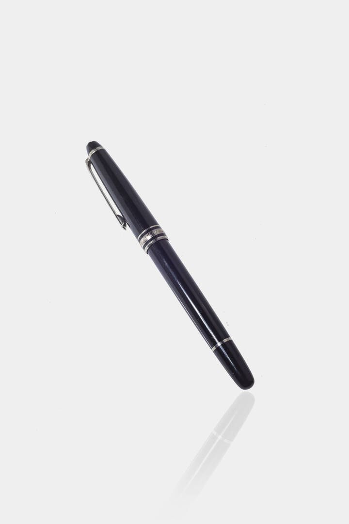 Penna a sfera marcata Montblanc. Cappuccio in resina nera con finiture di color oro bianco con logo della maison. Corpo in resina nera.
