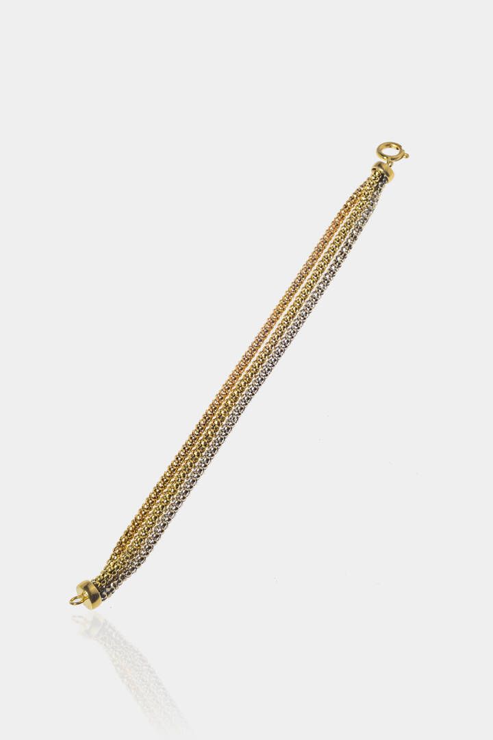 Peso gr 16 0 Lunghezza cm 16 5 composto da tre fasce lavorate a maglia tridimensionale nei tre colori dell'oro.